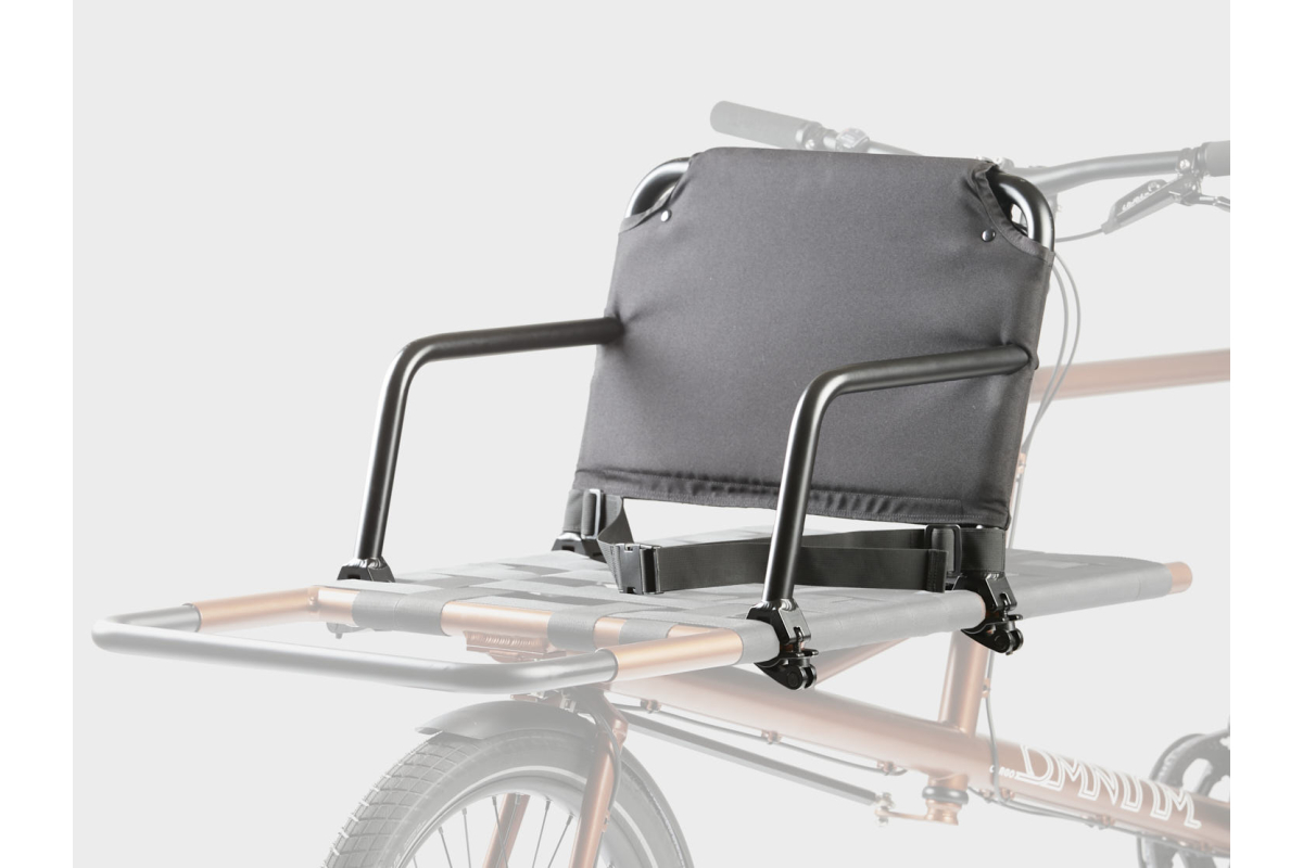 Met de rugleuning van de Omnium bakfiets kunt u onder andere een passagier vervoeren op uwOmnium Cargo of Mini-Max fiets.
