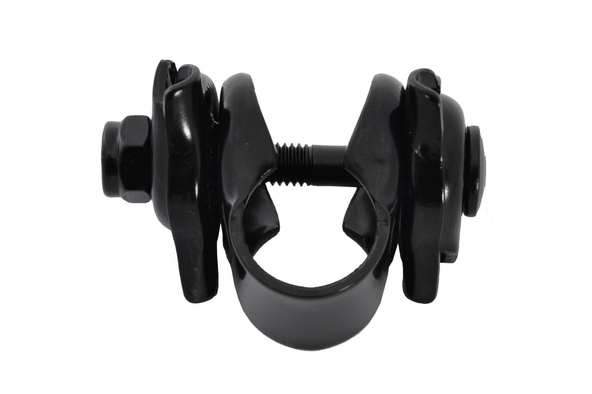 Degelijke zwarte zadelpenklem voor een vintage robuste stalen ros.