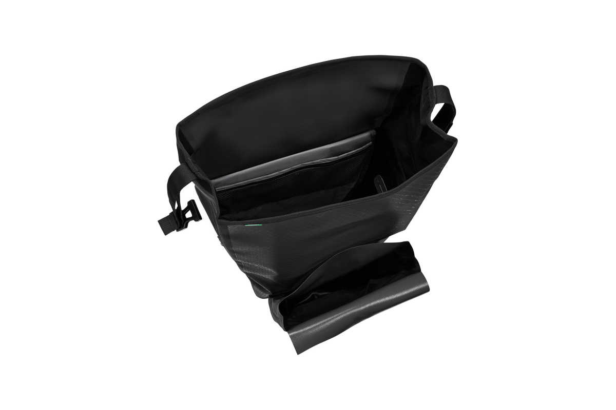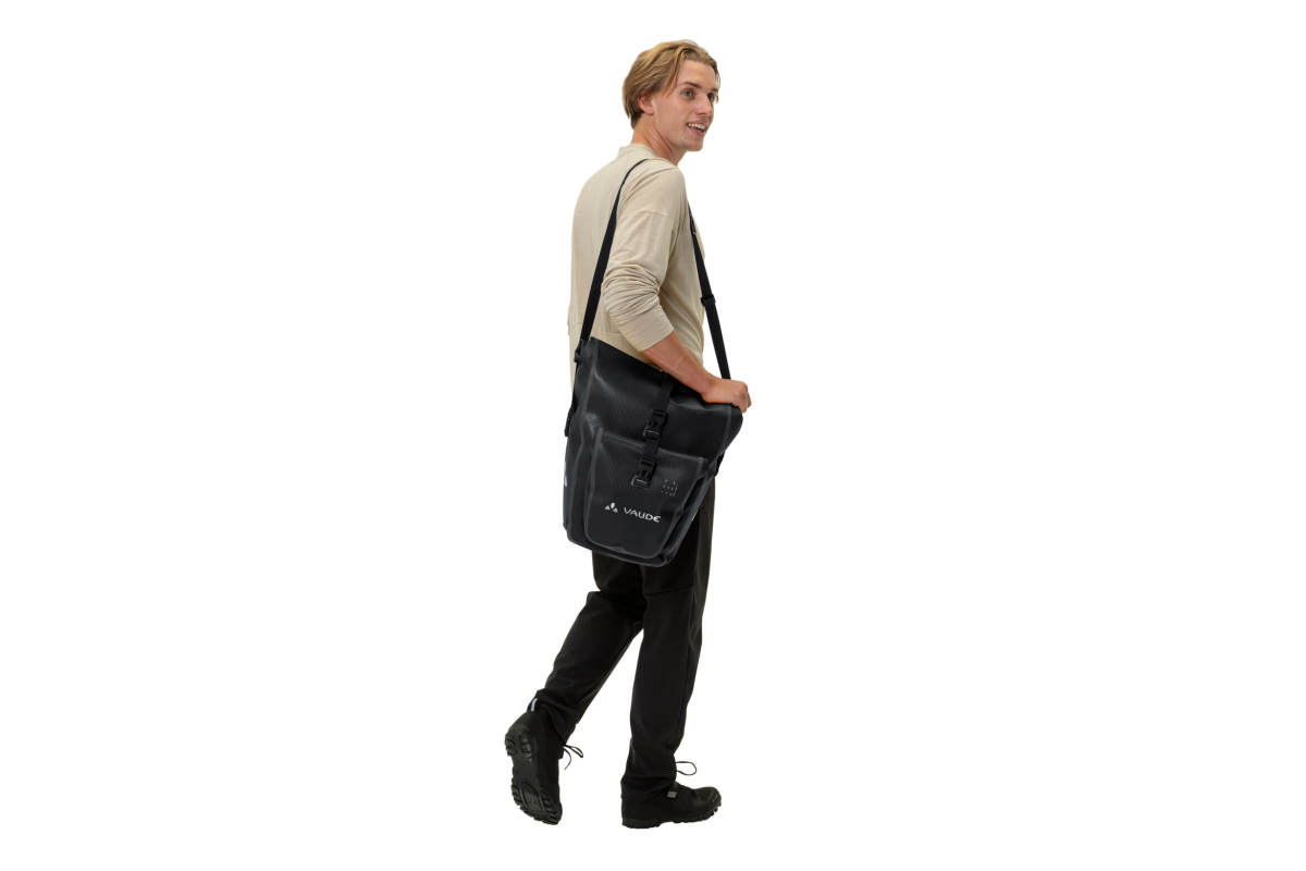 De Aqua Back Plus Single RecCycle van VAUDE is een ruime en functionele individuele fietstas, ideaal voor dagelijks gebruik of lange tochten. Hij is gemaakt van gerecycled materiaal en combineert waterdichtheid, duurzaamheid en respect voor het milieu.
