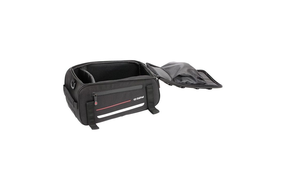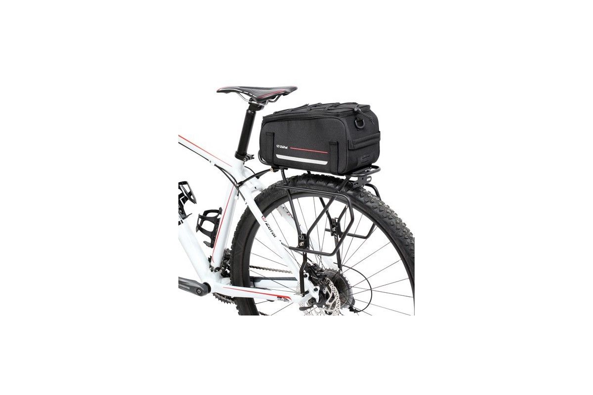 De tas met een gewicht van niet meer dan 10 kg Zefal Z Traveler 40 - 9 L hangt op de achterste kofferbak met behulp van Velcros®-banden.