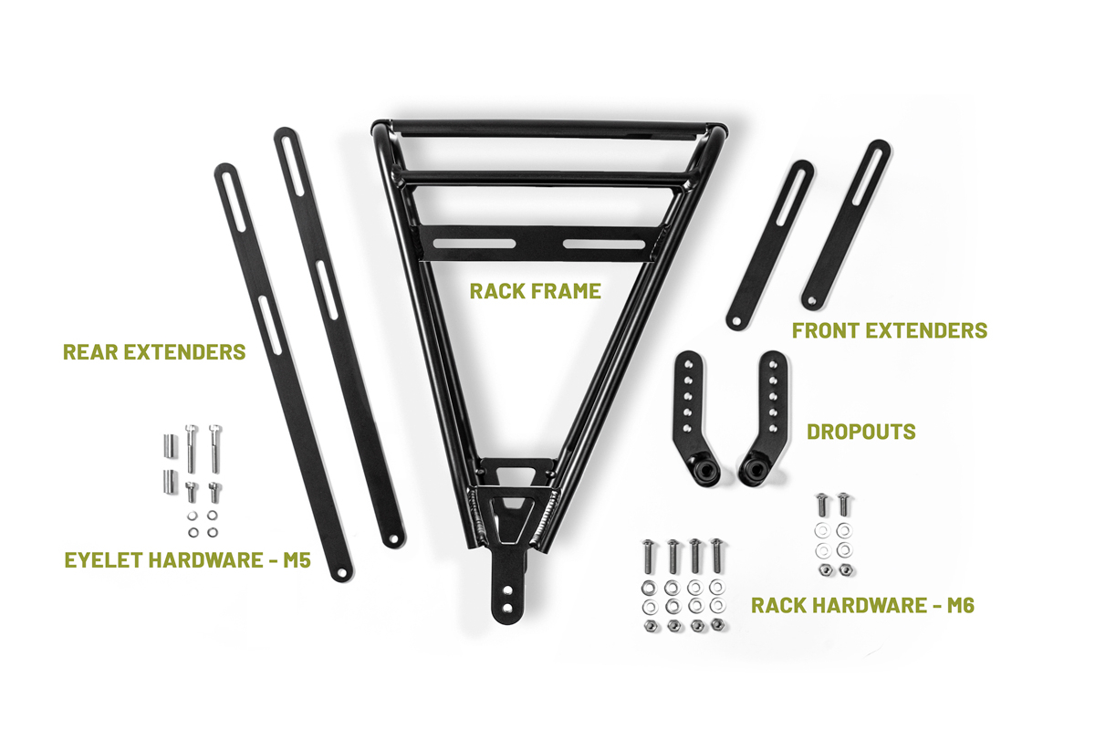 Duurzaam, lichtgewicht ontwerp: Gemaakt van 6061 aluminium met 13 mm hoofdbuizen en 10 mm bagagerails. Weegt slechts 960 g (inclusief bouten en verlengstukken) en heeft een zwarte poedercoating.