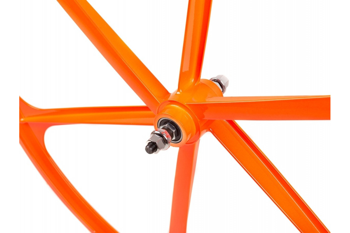 Oranje 6-spaakwiel met mooie afwerking die jouw fixie een hele strakke uitstraling geeft!