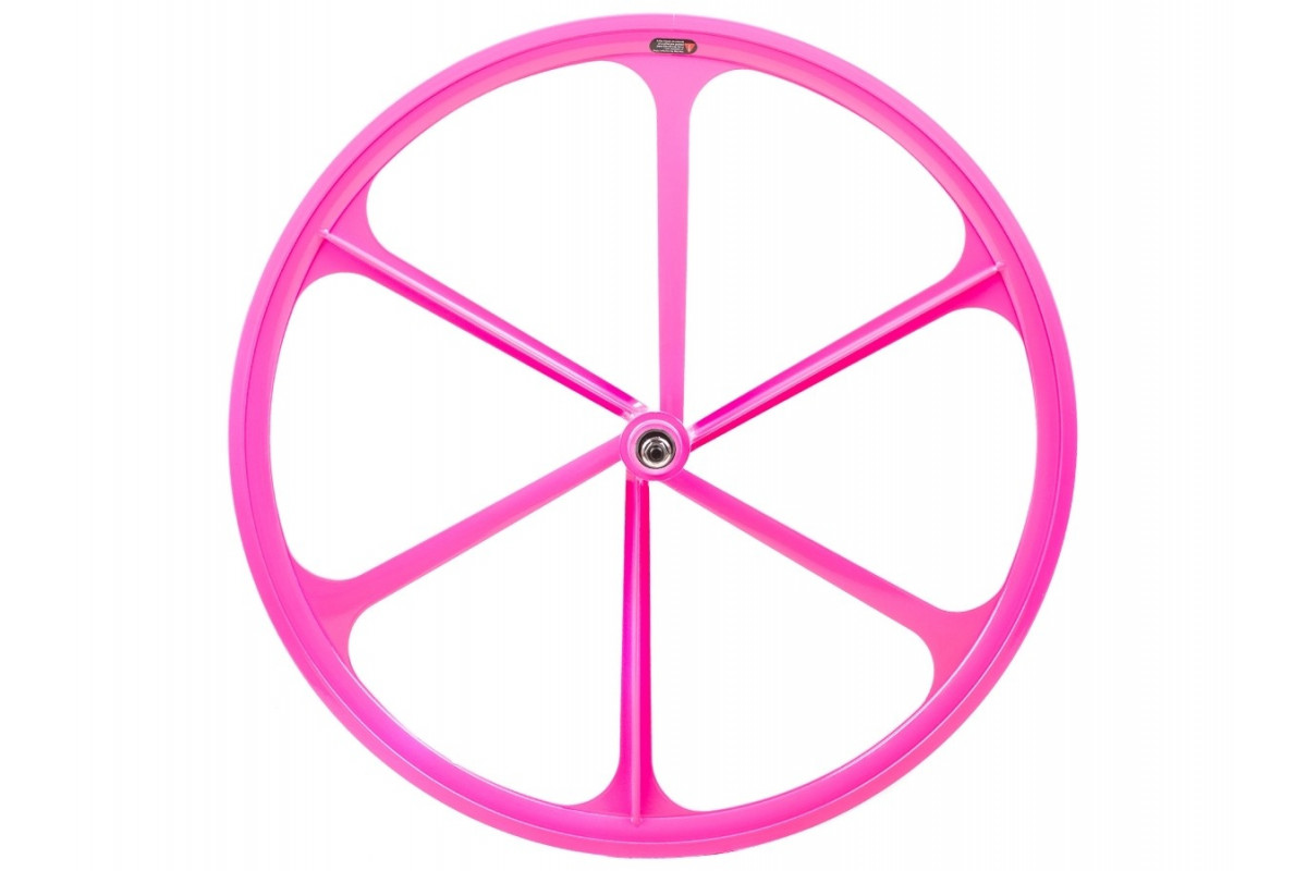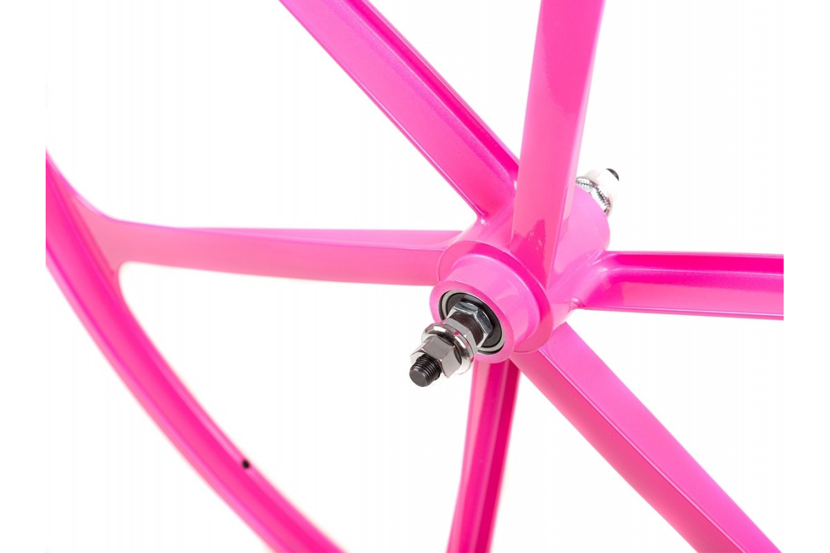 Roze 6-spaakwiel met mooie afwerking die jouw fixie een hele strakke uitstraling geeft!