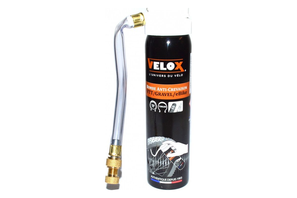 Deze spray repareert en pompt alle soorten banden en binnenbanden voor alle fietsen op.