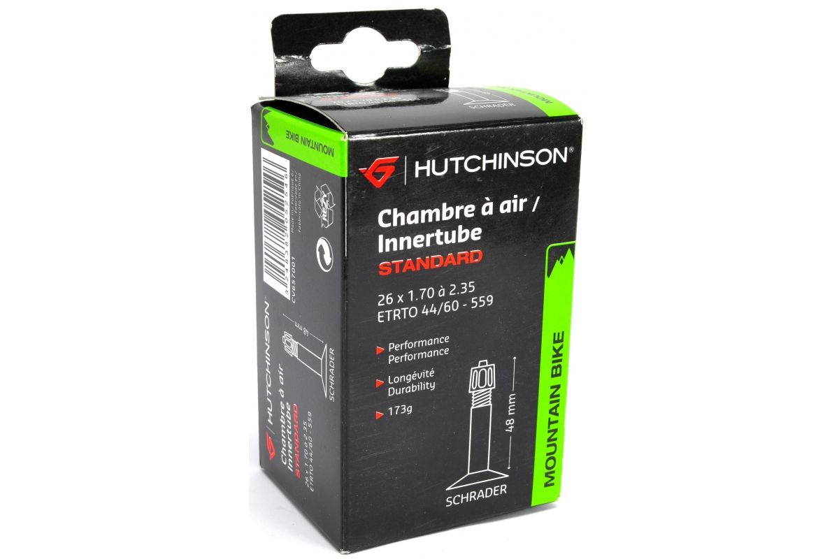 De Hutchinson 26" x 1.70-2.35 MTB-binnenband met Schrader-ventiel is een butylbinnenband die is ontworpen voor offroad-gebruik.