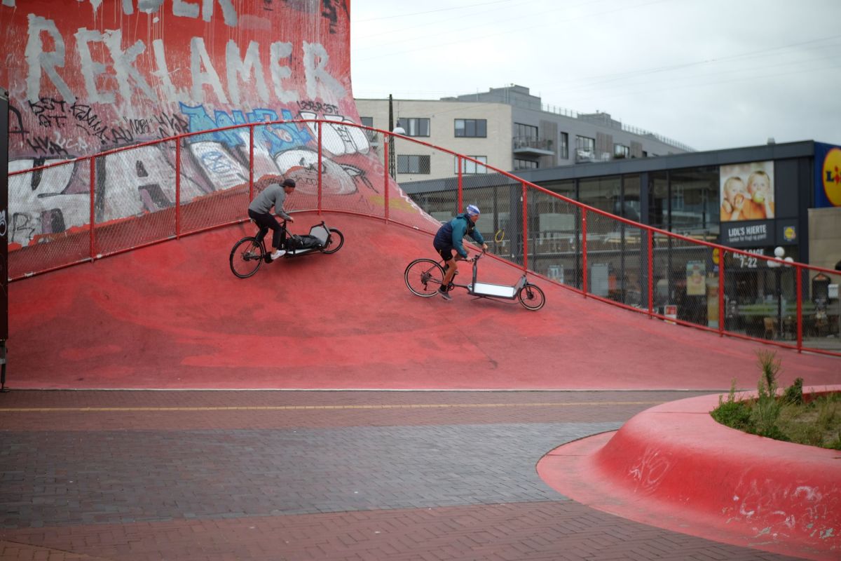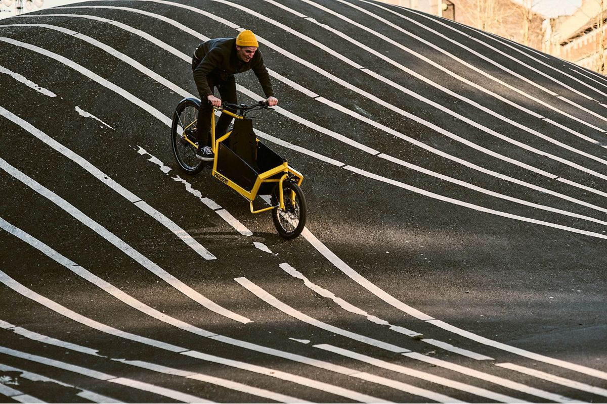 De ‘’cargo’’ ruimte is zo dicht mogelijk bij de grond geplaatst voor een zo laag mogelijk zwaartepunt. Niet breder dan een conventionele fiets: ideaal om tempo te fietsen.