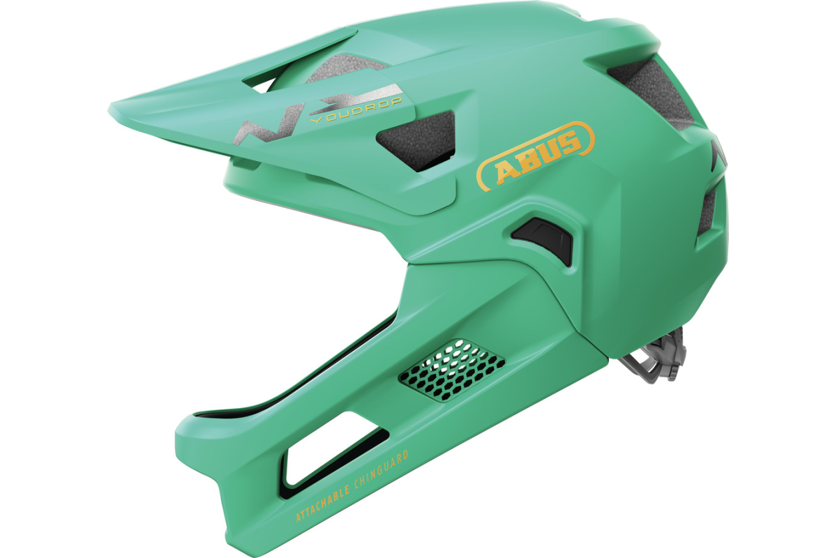 Deze helm is ook verkrijgbaar in een meer betaalbaar zonder haar kin, de Abus YouDrop.