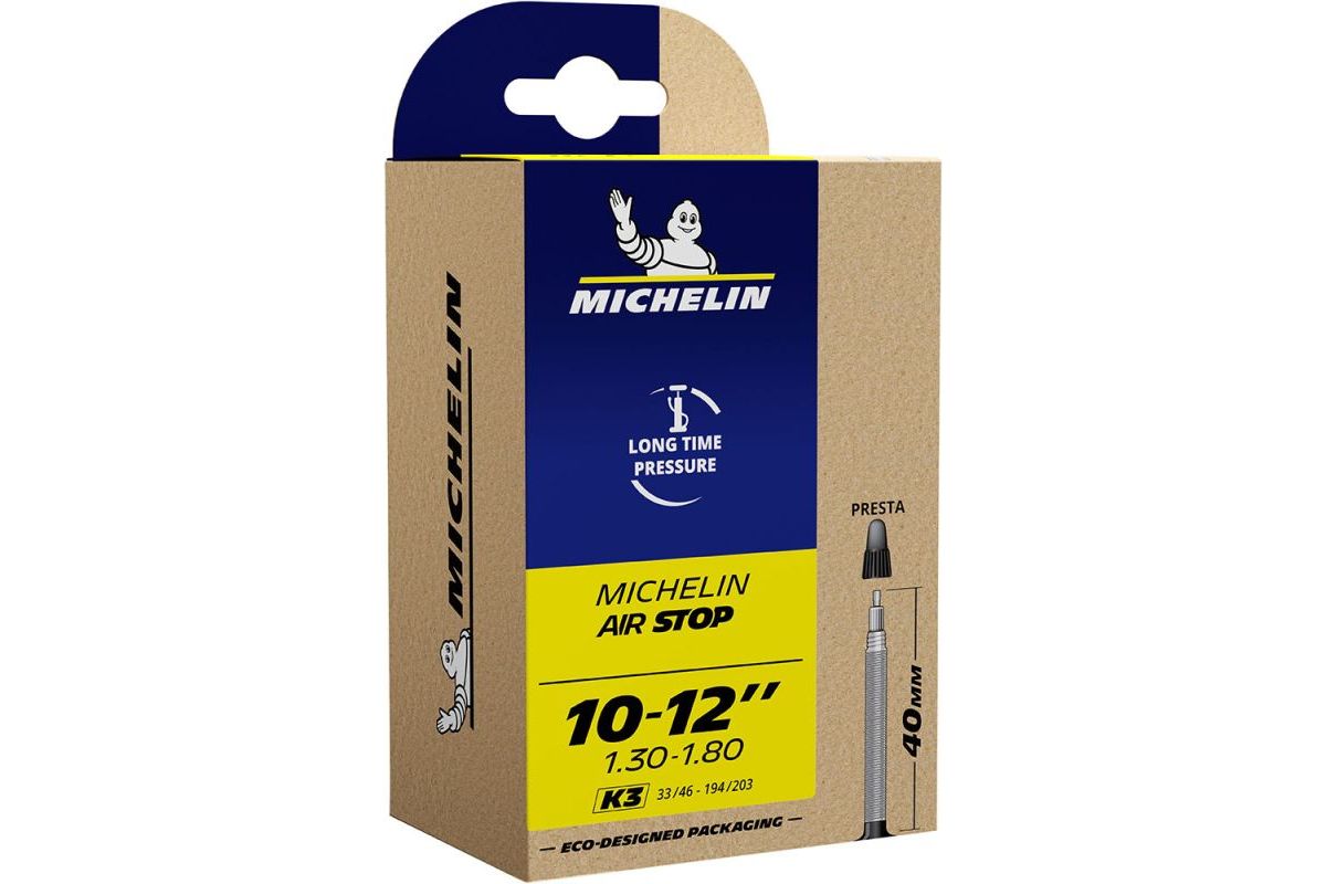 De Michelin K3 10"-12" x 1.30-1.80 binnenband heeft een Presta-ventiel.