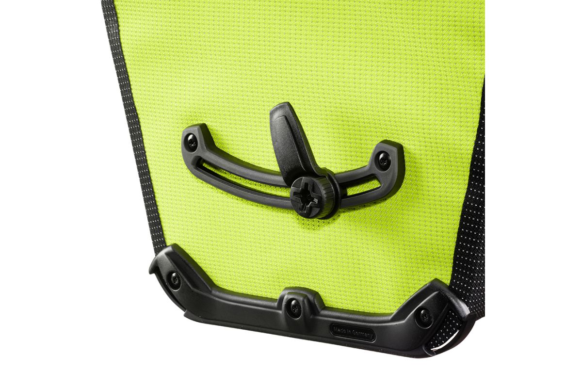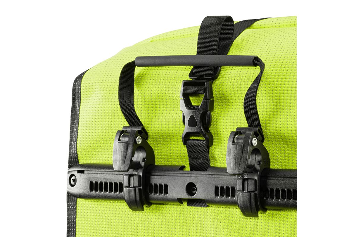 De Back-Roller High Visibility is de perfecte achterwieltas voor iedereen die de praktische rolsluiting prefereert. Het robuuste, waterbestendige weefsel in de optiek van luxueuze stof sluit de bagage waterdicht in en geeft ook het stof geen kans. Uitgerust met de uitgekiende haak kan de Back-Roller in een mum van tijd aan de fiets bevestigd en weer afgenomen worden. Met de schouderriem, die tijdens de rit gemakkelijk af te spannen is, kan je jouw fietstas ’s avonds comfortabel naar huis dragen.