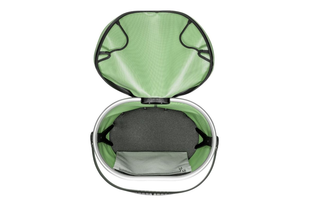 Een stabiel aluminiumframe en een comfortabele, verstelbare draaggreep ronden de moderne look af en maken het mogelijk om de mand comfortabel mee te nemen wanneer er een volgende keer boodschappen gedaan wordt. Voor een betere zichtbaarheid in het wegverkeer is de bagagedragermand van de voor ORTLIEB typische, fel schijnende reflector voorzien. De maximale nuttige lading van de mand bedraagt tien kilogram.