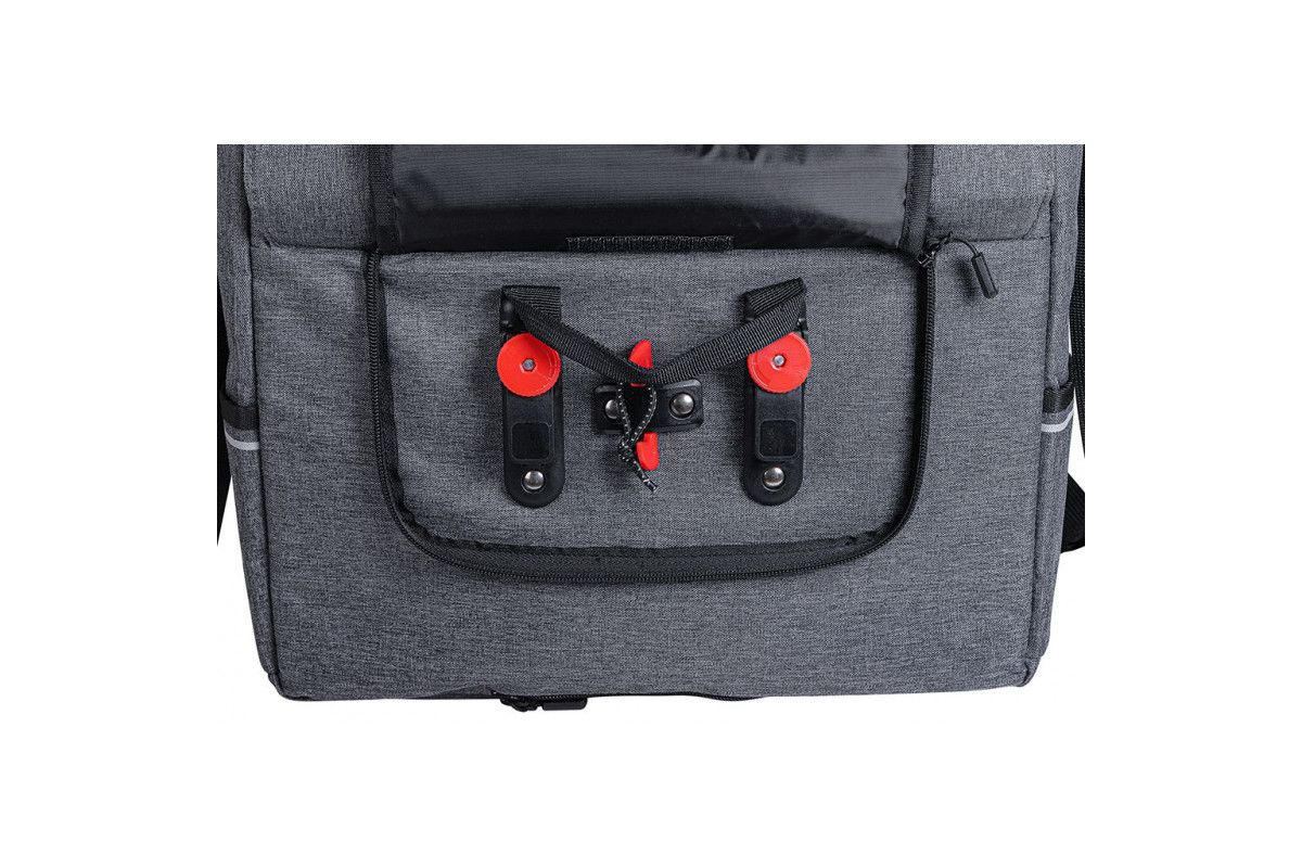 Het is voorzien van een eenvoudig en universeel bevestigingssysteem om hem in de achterbak te dragen.