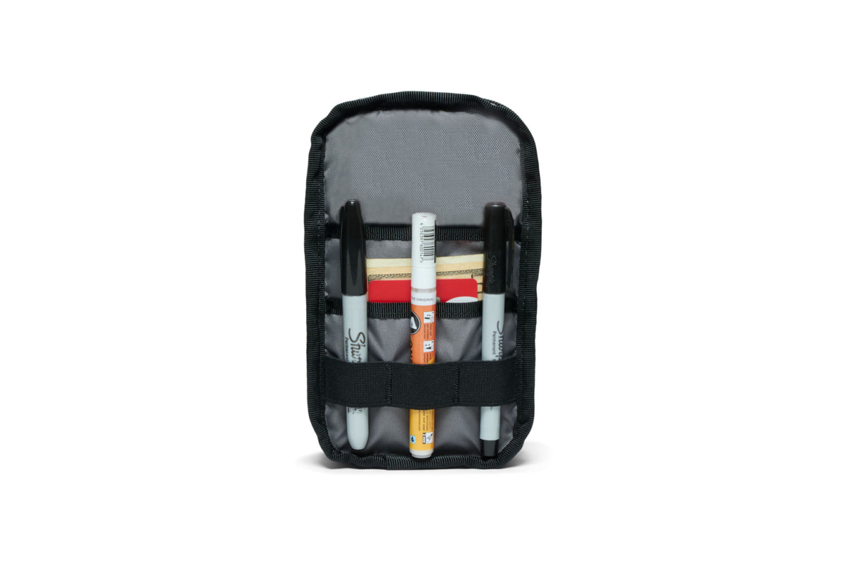 De Logan Pouch van Chrome Industries, District is een veelzijdige, compacte zak die is ontworpen om kleine essentiële spullen te organiseren en te beschermen. Deze tas kan alleen of als aansluitbare aanvulling op een grotere tas worden gebruikt.