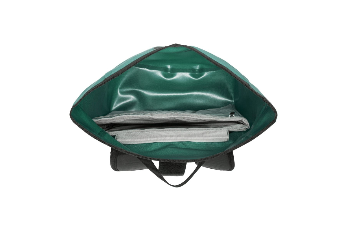 De bescherming tegen scherpe kanten aan de onderste hoeken beschermt tegen slijtage. Aan de klittenbandklep kan er aanvullend een achterlicht of kan de fietshelm bevestigd worden. Zoals alle producten van ORTLIEB natuurlijk duurzaam Made in Germany.