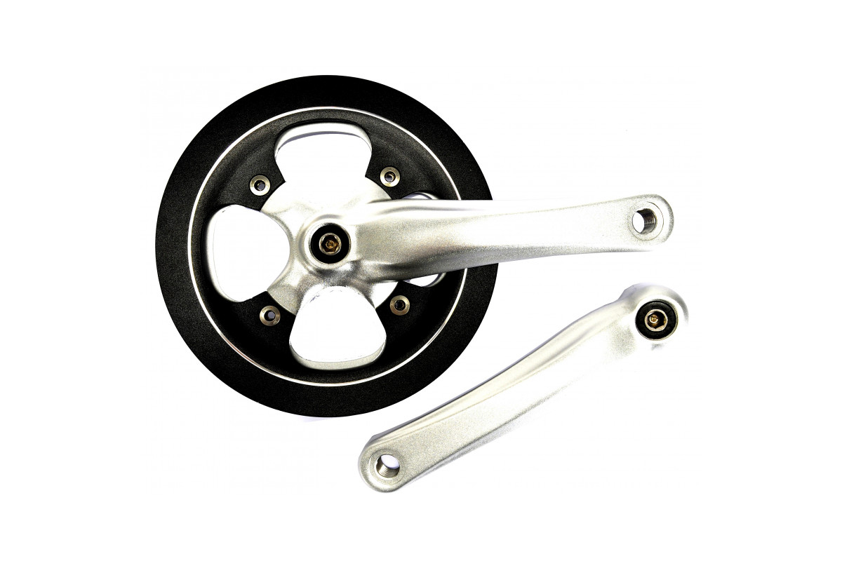 Robuuste aluminium constructie: Dit crankstel is gemaakt van hoogwaardig aluminium en garandeert een uitzonderlijke weerstand tegen de schokken en spanningen van rijden in de stad. De lichtgewicht en toch stevige constructie biedt een ijzersterke duurzaamheid voor jarenlang zorgeloos rijplezier.