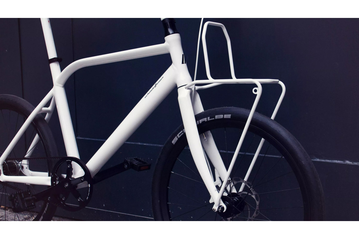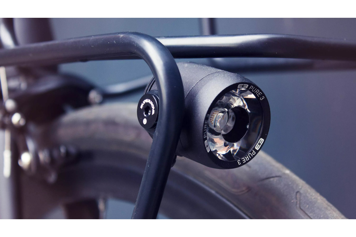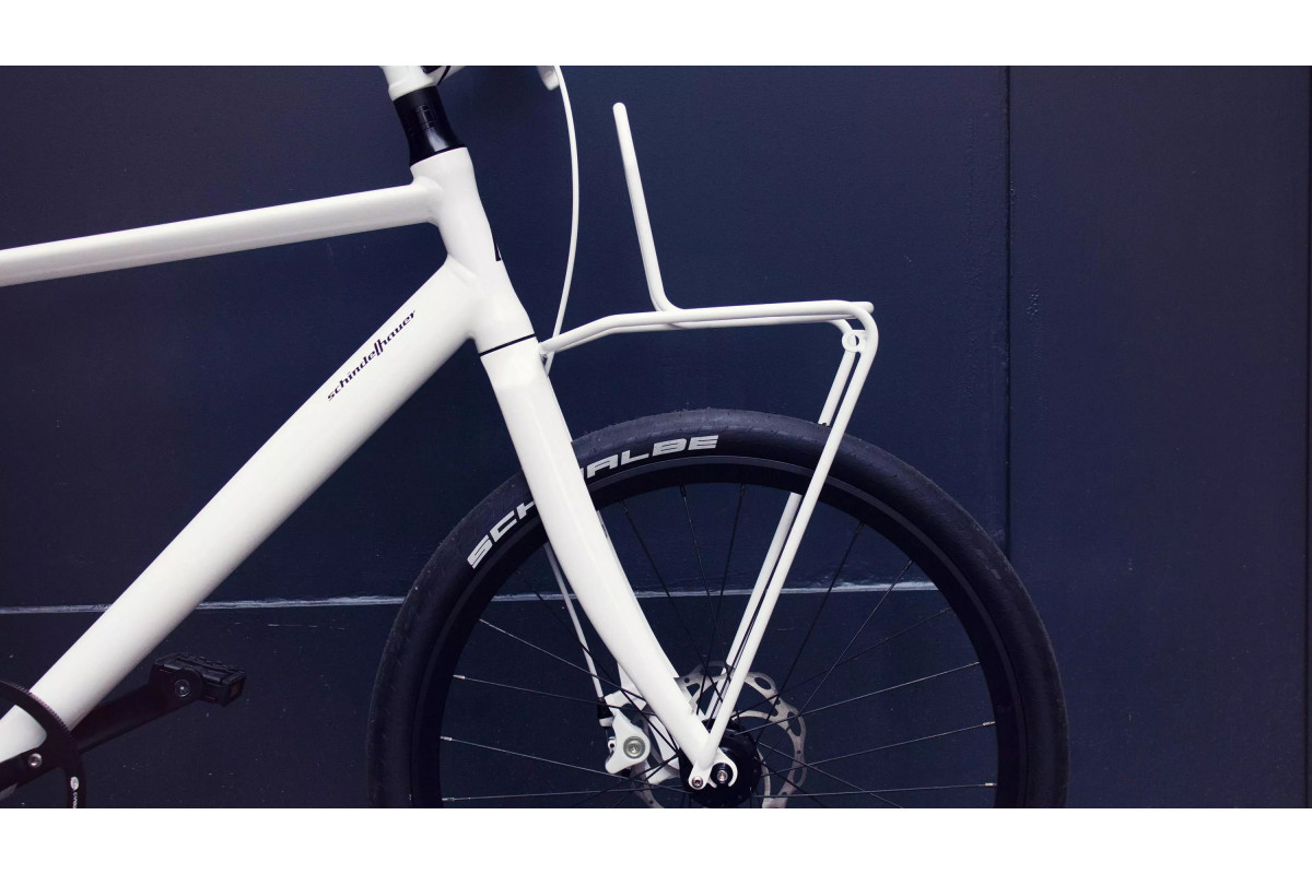 Bovendien is het mogelijk om het Supernova E3 Pure-voorlicht aan de zijkant van het rek te installeren (verlichting geleverd bij sommige modellen van Schindelhauer-fietsen), met interne doorvoer van kabels.