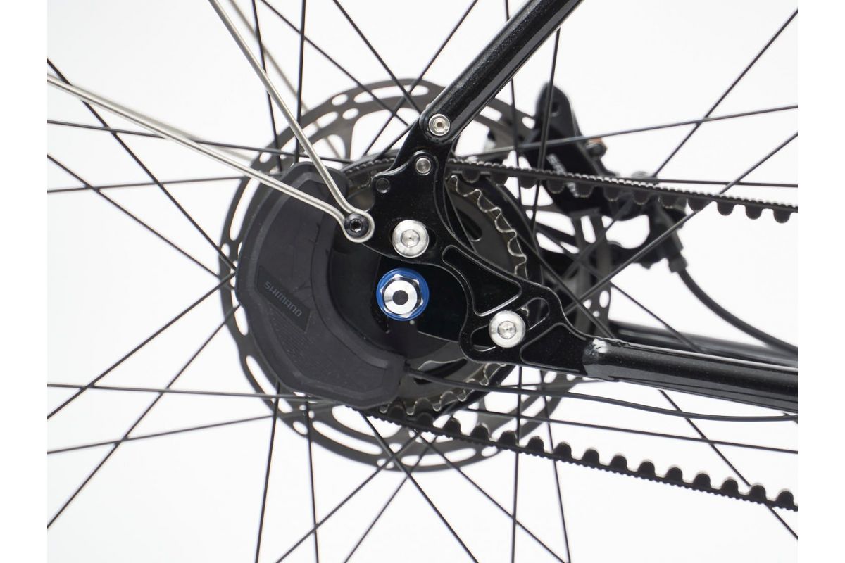 Het is gekoppeld aan een Gates Carbon-riem .
