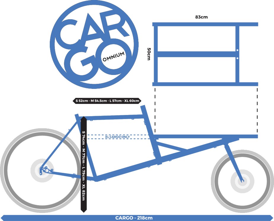 Omnium e-Cargo V3 bakfiets maattabel: