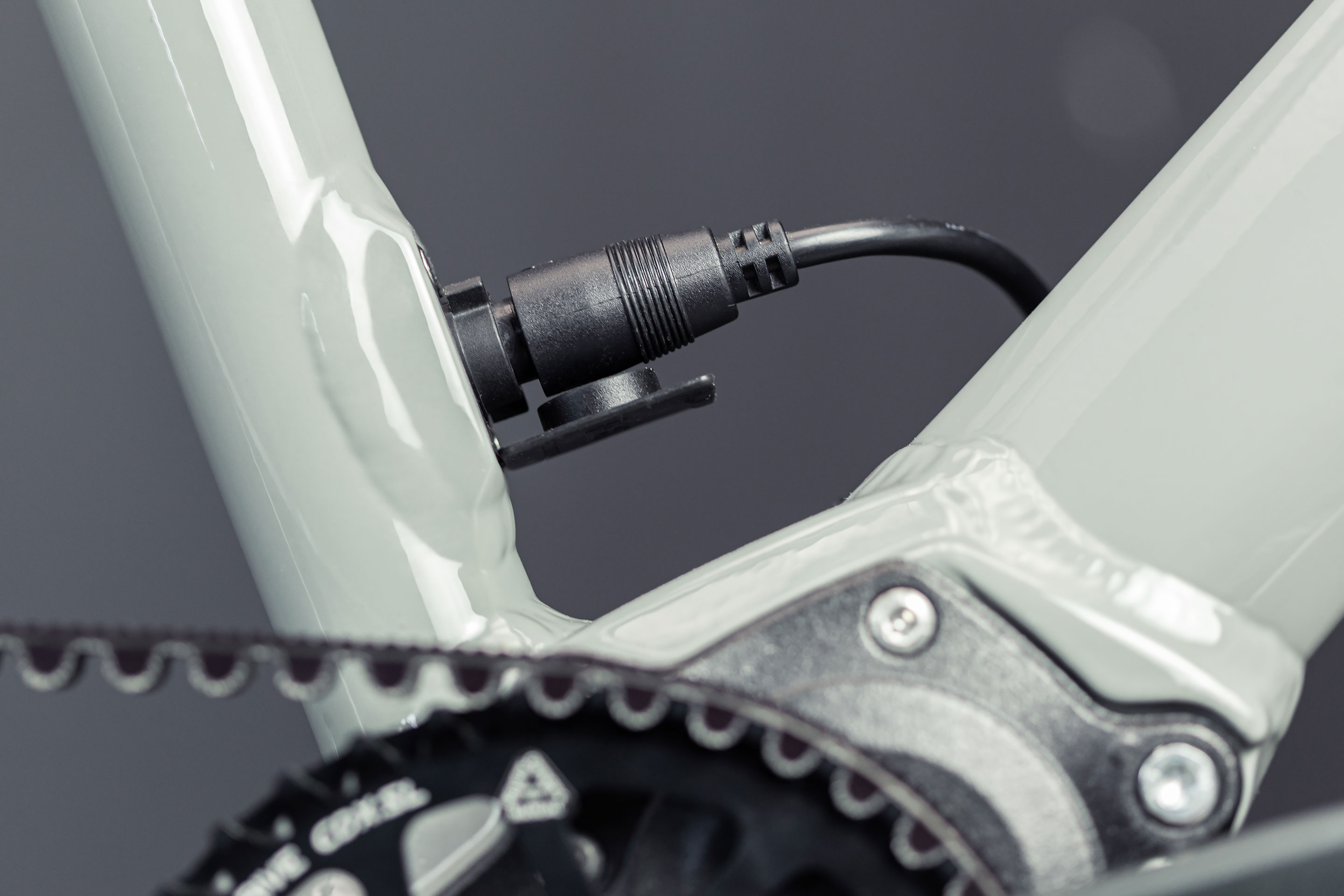 De totale integratie van de kabels die nodig zijn voor de elektrificatie van de fiets.