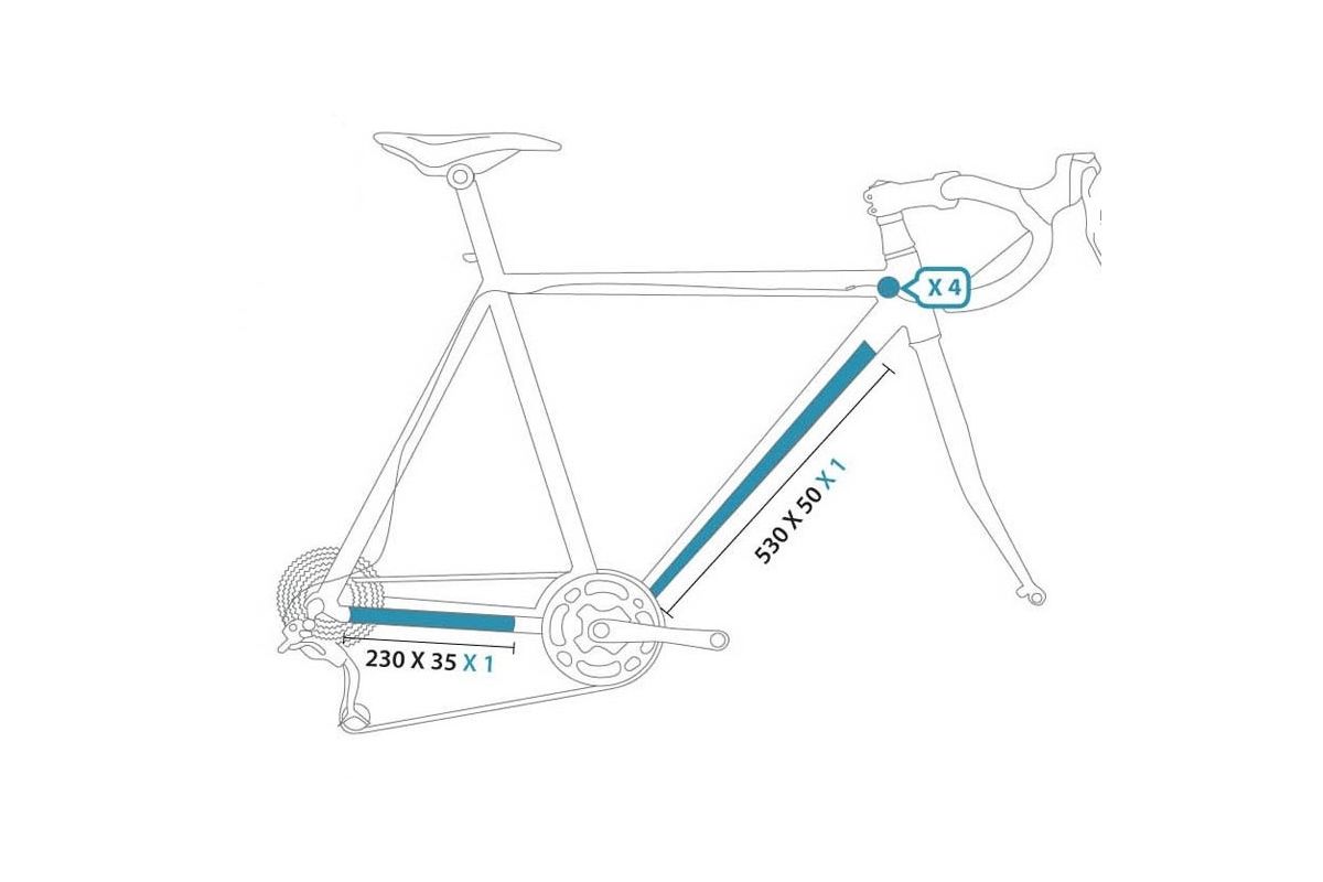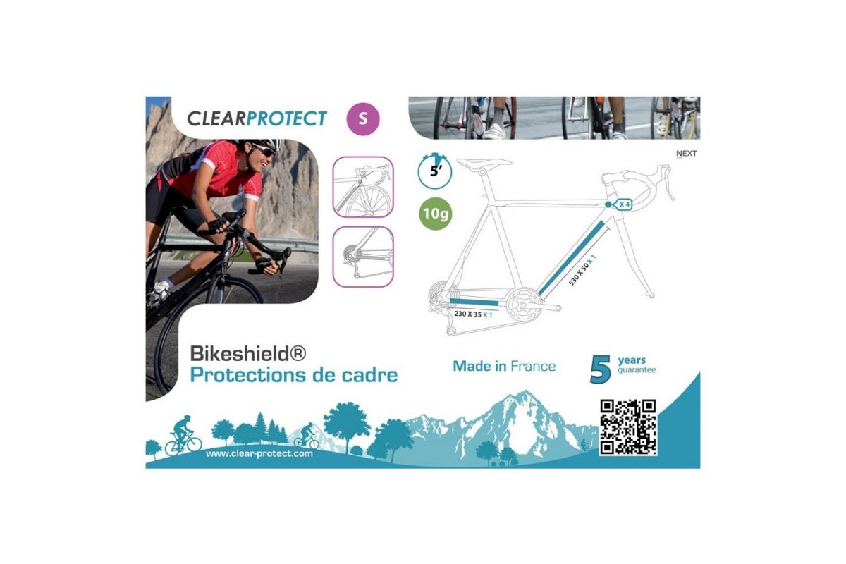 De glanzende Clear Protect framebescherming maakt het gemakkelijk om het frame van een racefiets of mountainbike te beschermen, afhankelijk van de gekozen maat.