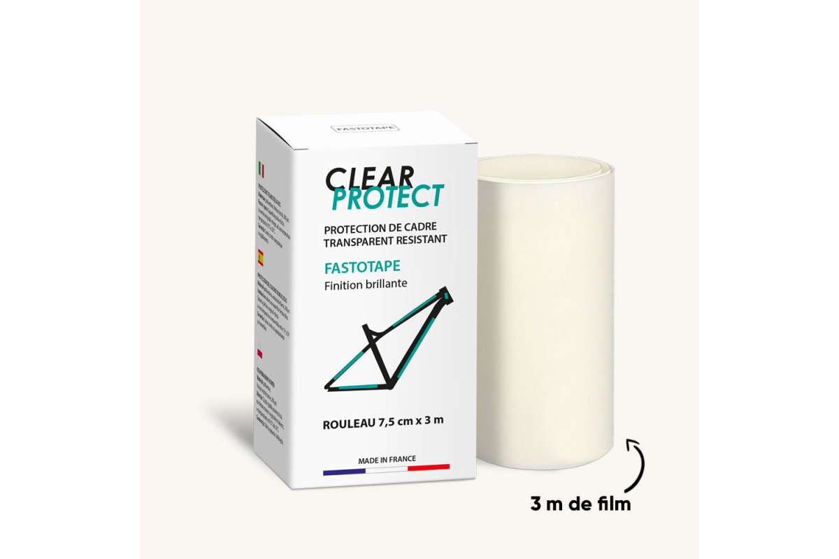 De Fastotape glansbeschermingsrol is verkrijgbaar als beschermend plakband om op het frame te plakken.