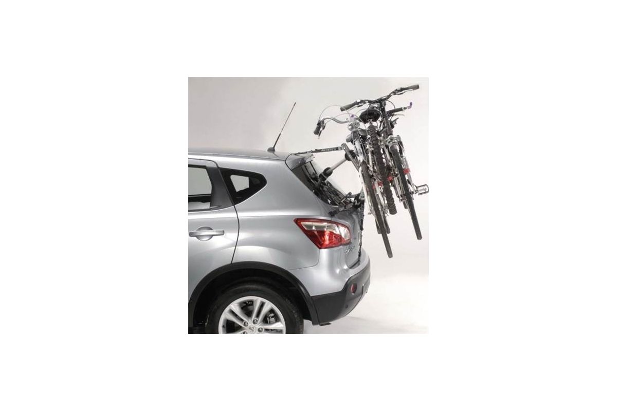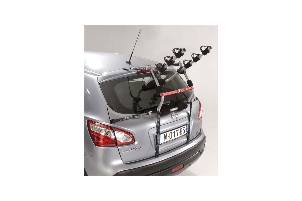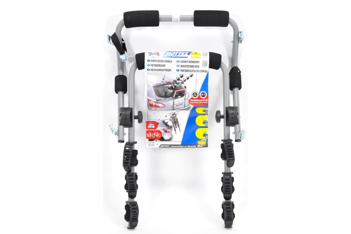 Met de Mottez Ariane 3-fietsendrager op de achterklep kunt u maximaal drie fietsen vervoeren op de achterklep van een auto .