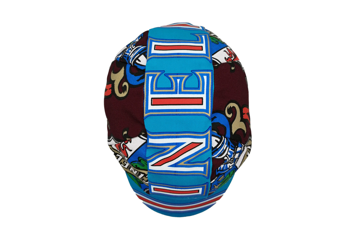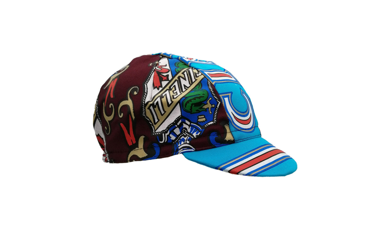 De Cinelli Heritage Cap neemt de originele heraldische merkelementen die Cino Cinelli eind jaren veertig ontwikkelde, waarbij hij de symbolen van zijn geboortestad Florence verenigt met die van Milaan, de stad waar hij zijn gelijknamige bedrijf oprichtte, en herwerkt ze in een meer eigentijdse stijl. en agressievere kleuren.