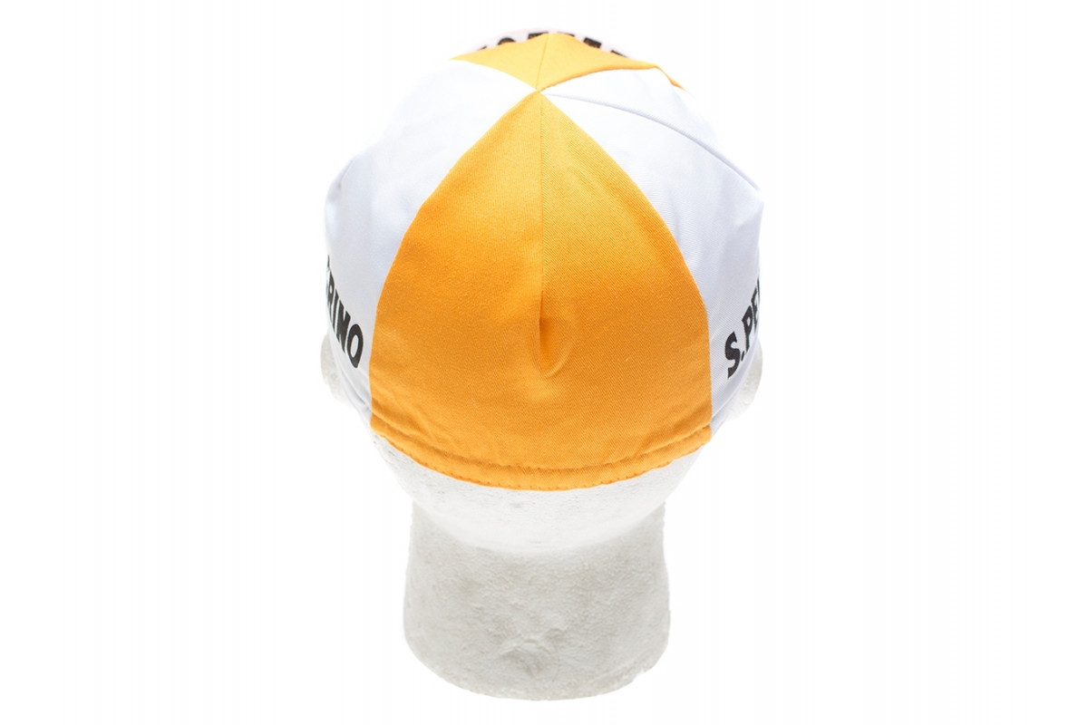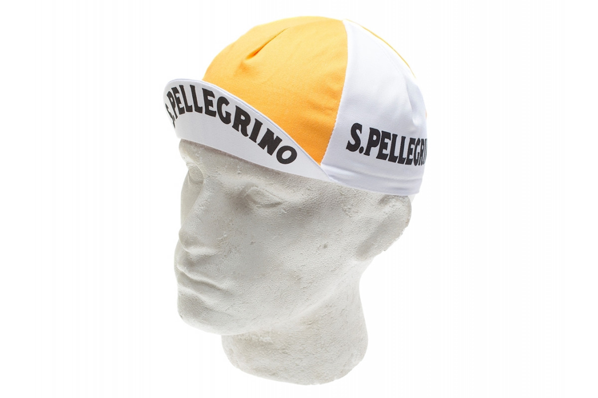 Deze vintage stijl fietspetjes brengen het gouden tijdperk van fietsen terug. Rijd in stijl met het gave petje van de Italiaanse San Pellegrino ploeg!