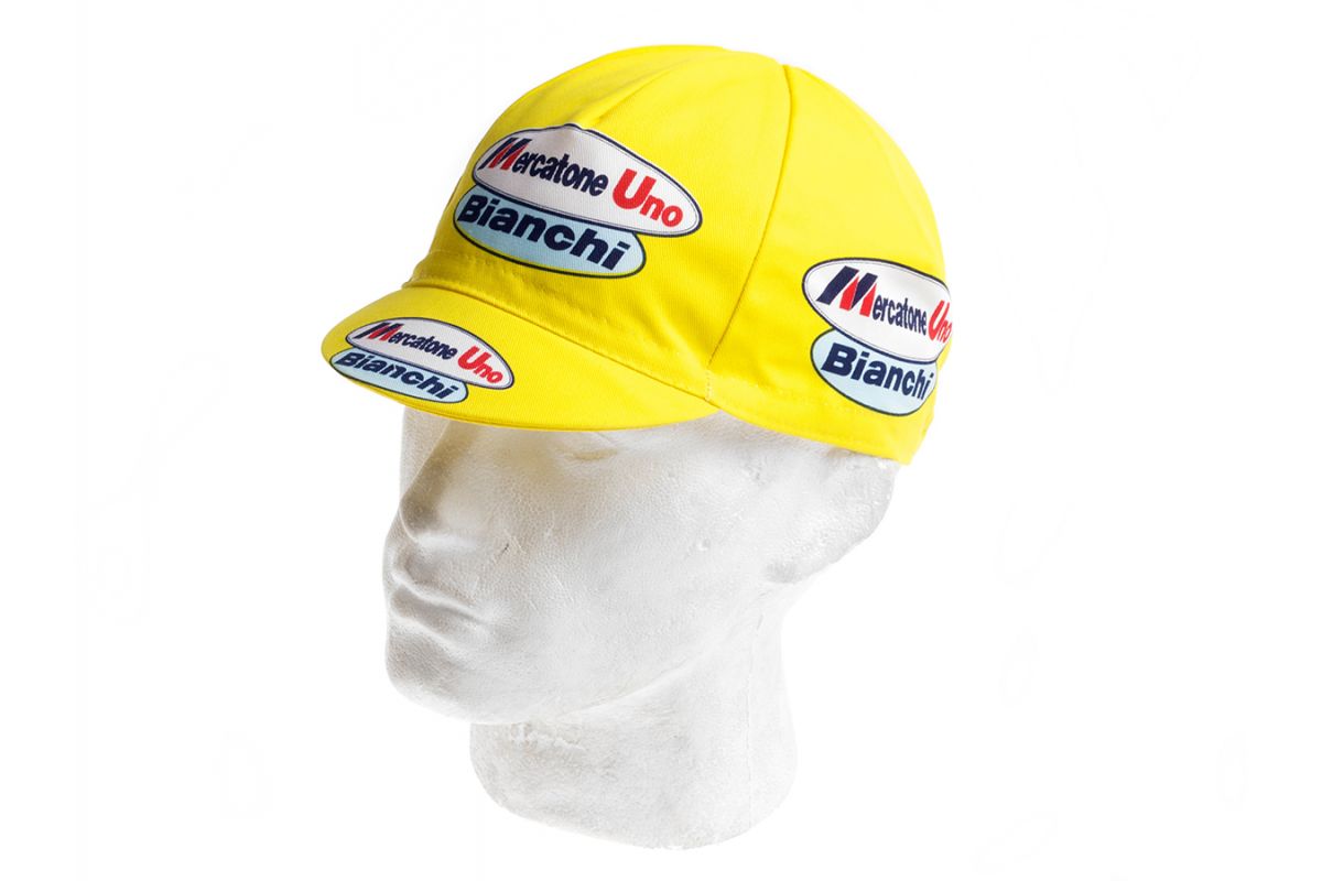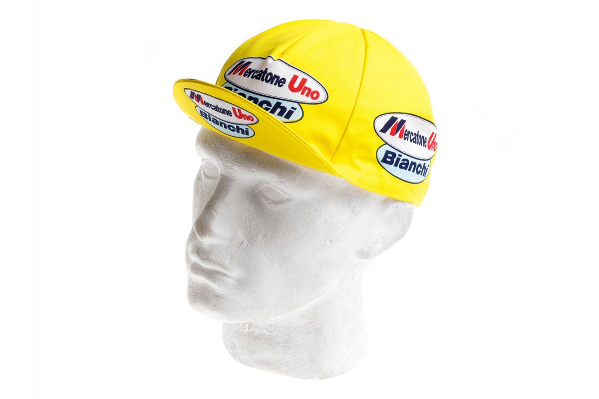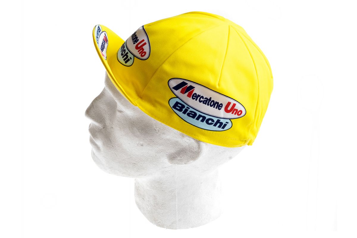 Dit retro wielerpetje van Mercato Uno doet de wielerkenner direct aan de wijlen rasklimmer Marco Pantani denken. Patani won in 1998 de Giro en daarna de Tour! Pantani is een grote wielerheld in Italië en wordt daar nog steeds geëerd. Nederlanders zien meer een gevallen dopingheld. Toch is dit een cool petje!