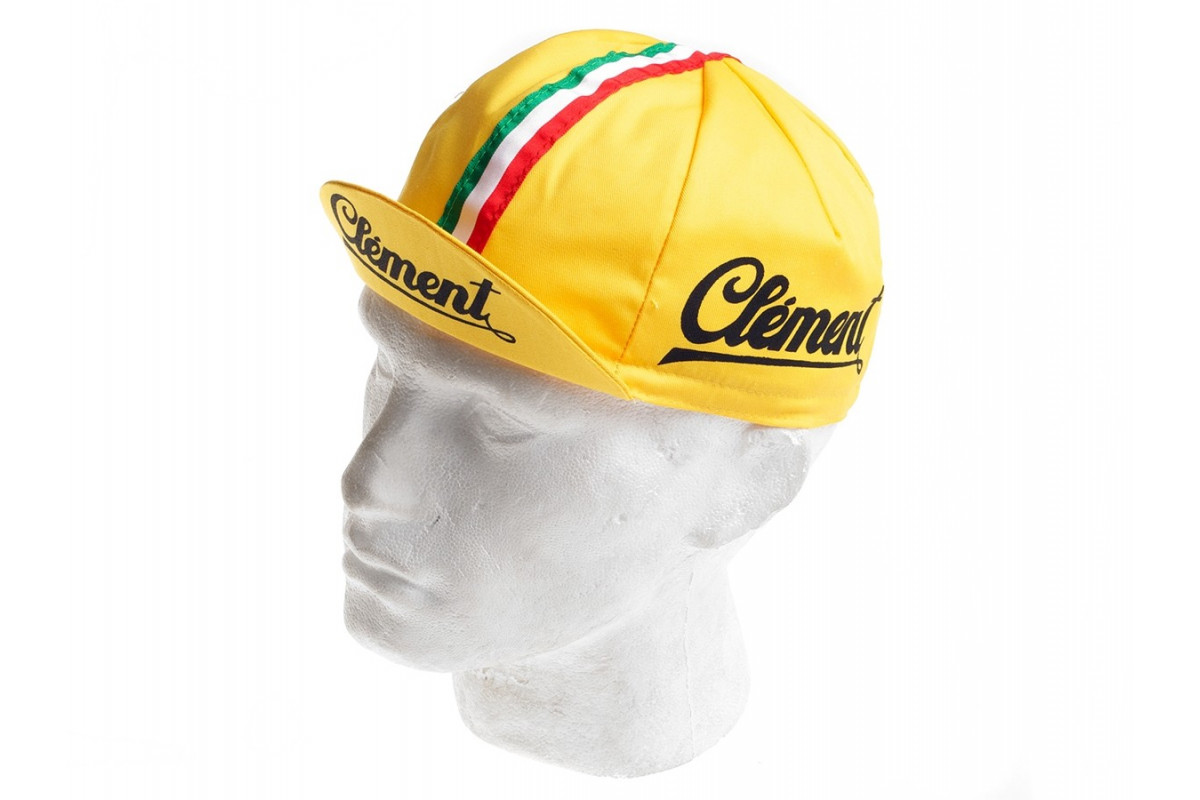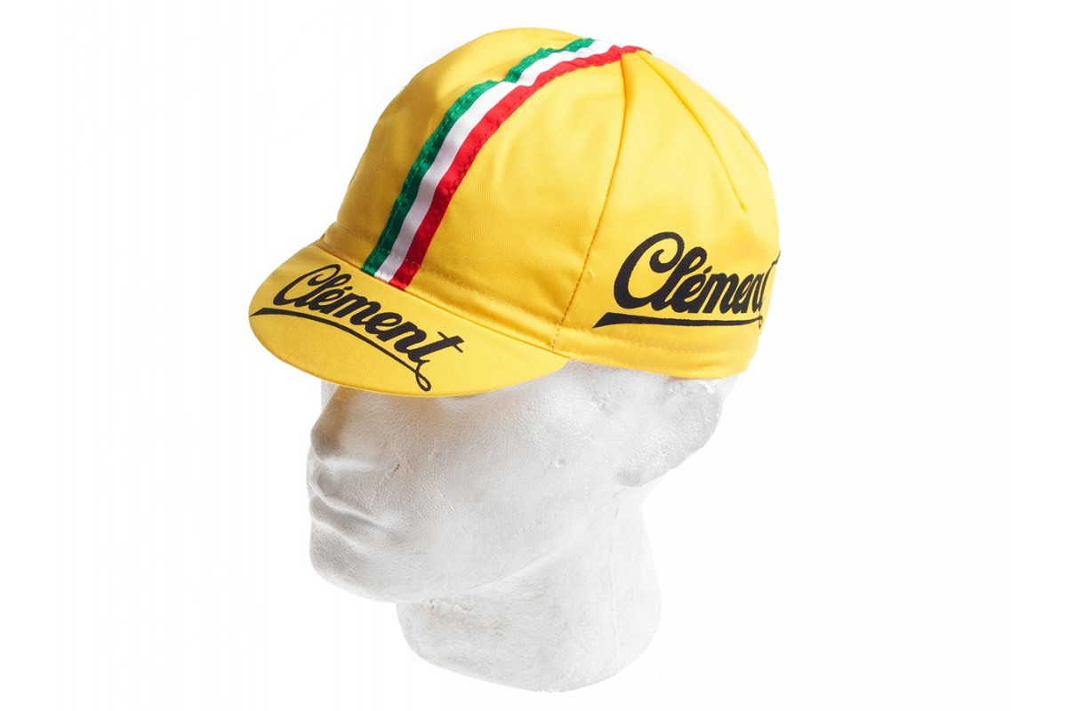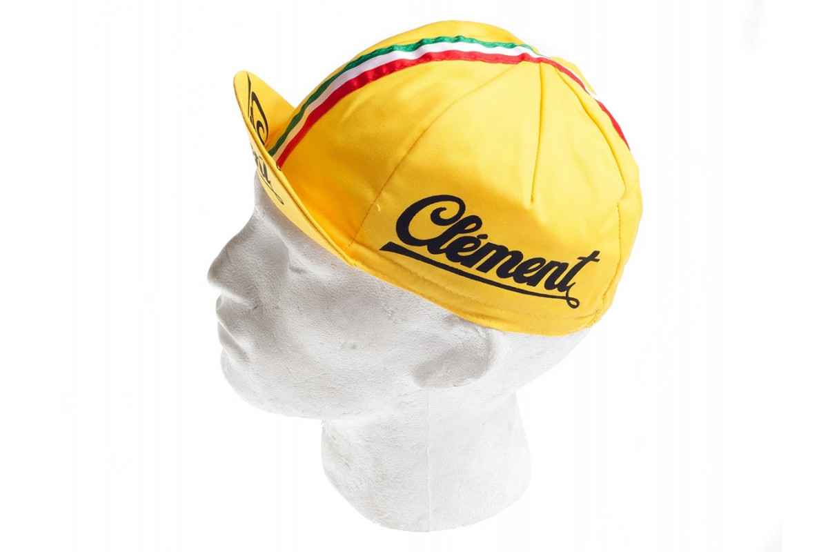 Een heel mooi kanarie geel petje met het logo van Clement en een Italiaanse vlag over de kruin. Er goed uitzien is ook belangrijk!
