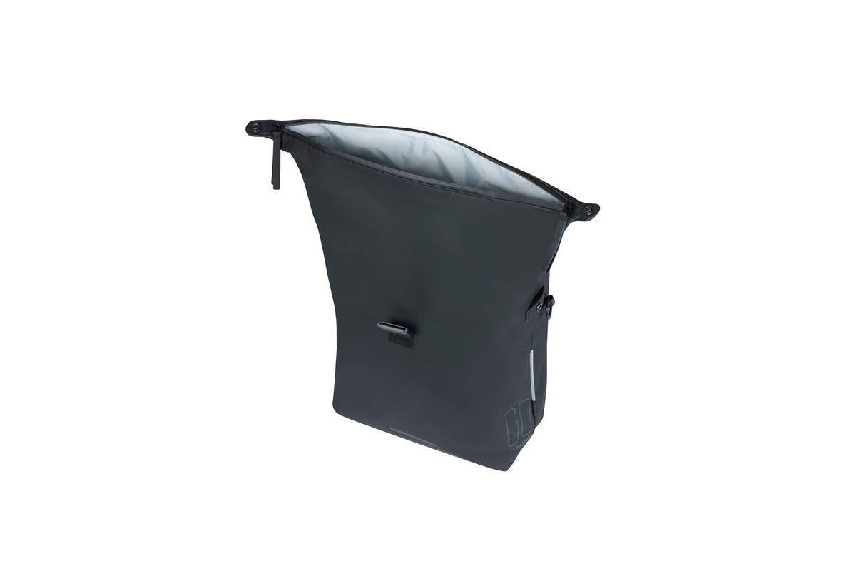 De tas is voorzien van een handige clipsluiting en zorgt ervoor dat uw spullen veilig blijven tijdens uw reis. Bovendien zorgt de verstelbare schouderband ervoor dat je de tas comfortabel op je schouder kunt dragen als je niet op de fiets zit. Reflecterende details en een geïntegreerde LED-lichtstrip voegen een extra veiligheidslaag toe door uw zichtbaarheid te verbeteren wanneer u 's nachts reist.
