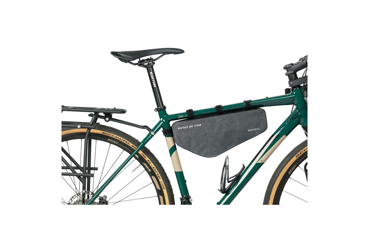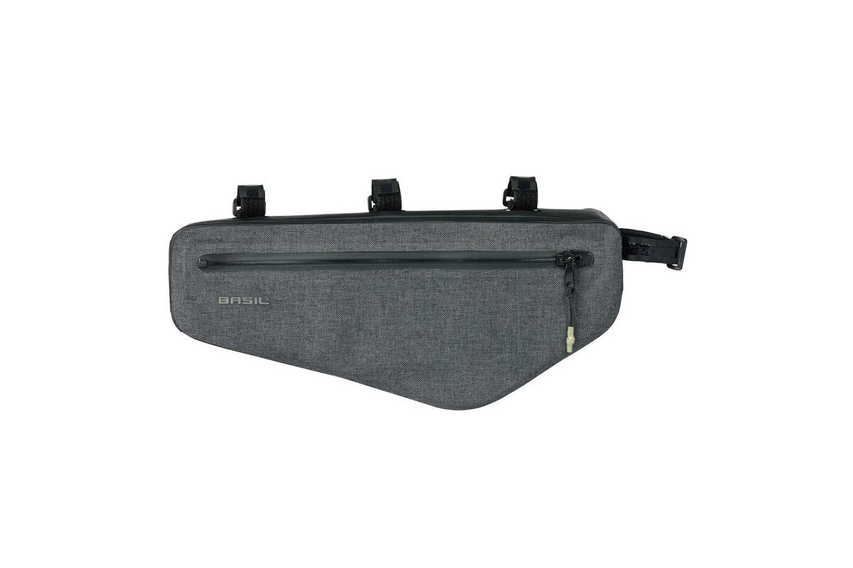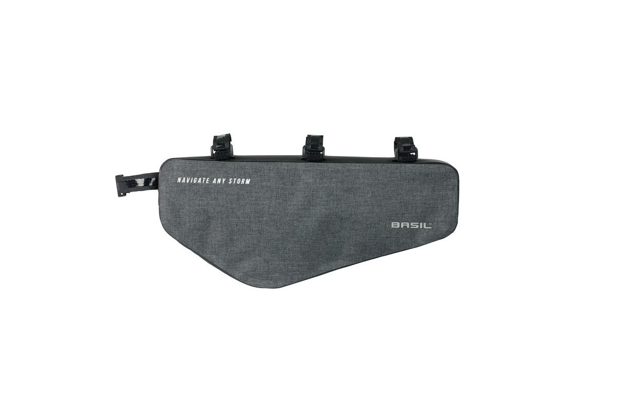 De Basil Navigator Storm frametas is een sportieve, compacte fietstas voor fietsers die alleen het essentiële willen meenemen of het volledige assortiment kwalitatieve waterdichte fietstassen willen hebben. Met tassen uit de Navigator Storm collectie kun je elke fietstocht aan! In deze uiterst praktische frametas past meer dan je denkt, waaronder een fietsslot, portemonnee en mobiele telefoon. Door het reflecterende logo aan de zijkant van de tas ben je iets beter zichtbaar voor andere weggebruikers. Je bevestigt de tas eenvoudig aan het frame van je fiets, zadelzijde of stuurzijde, met de (extra) klittenbandsluitingen en hij blijft perfect op zijn plek zitten dankzij de antisliplaag. De waterdichte stof (IPX3) zorgt ervoor dat een plensbui je niet tegenhoudt. Bovendien is de zeildoekbodem gemakkelijk schoon te maken, zodat je tas er als nieuw blijft uitzien. Functies: