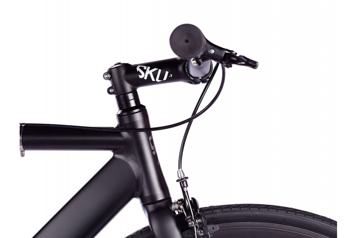 Het prachtige lichte en sterke aluminium 6016 doubble butted frame heeft gladde lasnaden. Dit in combinatie met een bullhorn, een minimalistisch ontwerp en de matzwarte finish geeft de fiets een snelle stealthlook.