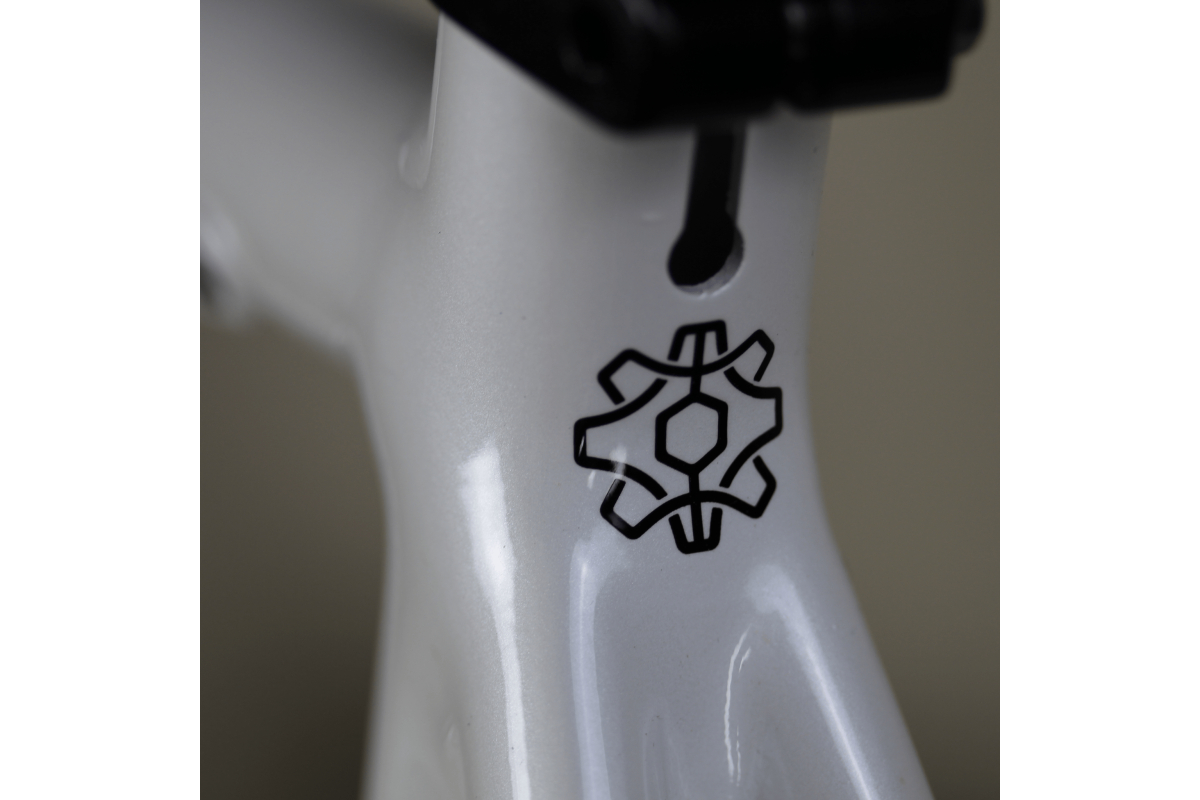 Het frame wordt geassocieerd met een bijzonder stijve en lichte carbon vork . Het biedt een speling voor de voorband van 32 mm .