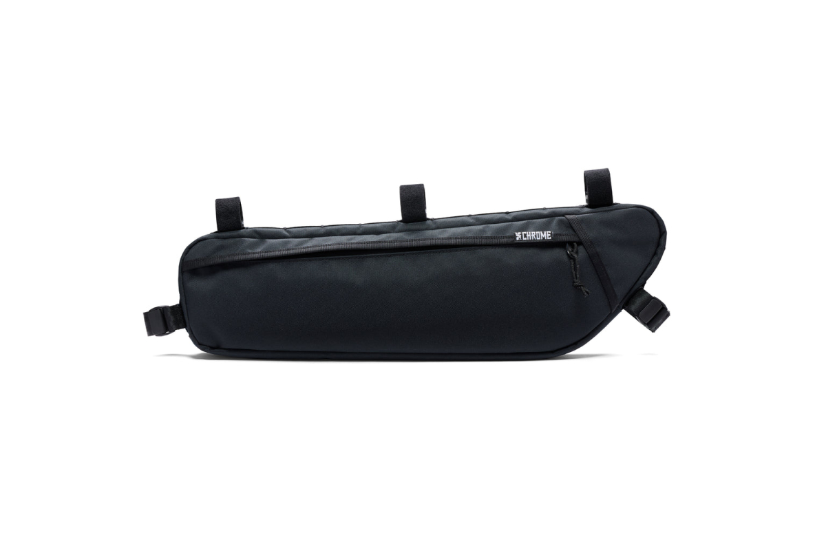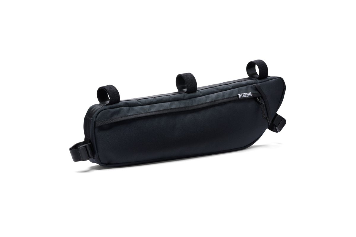 Hier de tas van frame van vélo van het merk Chrome Industries Holman gemaakt van gerecycled en waterdicht materiaal.