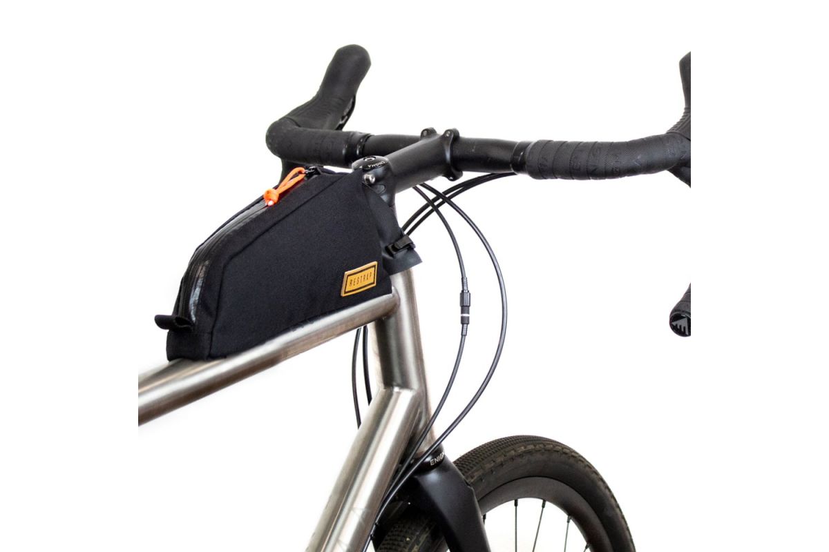 Gemaakt voor zowel bikepacking als voor dagelijks gebruik in de stad, met de Restrap top tube tas kun je veel kleine accessoires of je repen vervoeren.