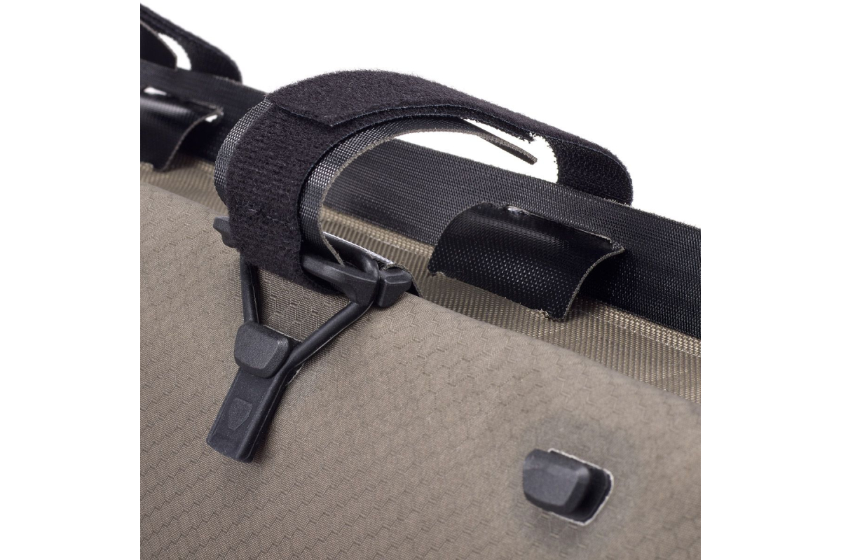 De Frame-Pack RC Toptube is de oplossing voor iedereen die graag toegang heeft tot zijn bidons en tegelijkertijd zijn of haar spullen in de framedriehoek van de fiets draagt. Deze waterdichte frametas met rolsluiting is ook ideaal voor mountainbikes met volledige vering, waarbij de ruimte in de framedriehoek wordt beperkt door de schokken.