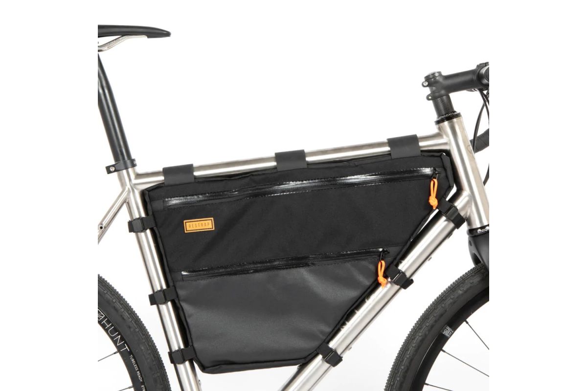 De tas vult de vrije ruimte van de voorste driehoek van je gravel- of toerfiets bijna volledig.