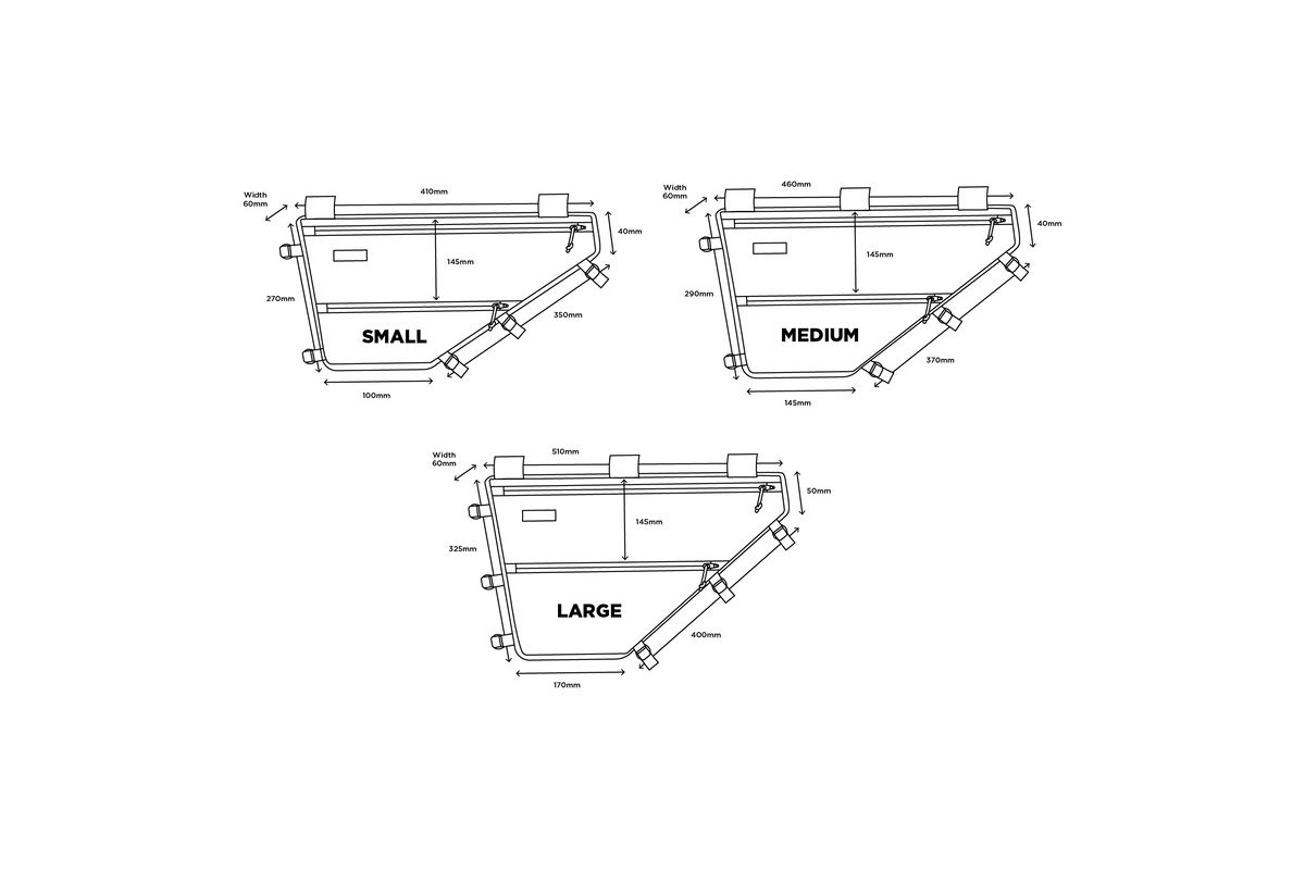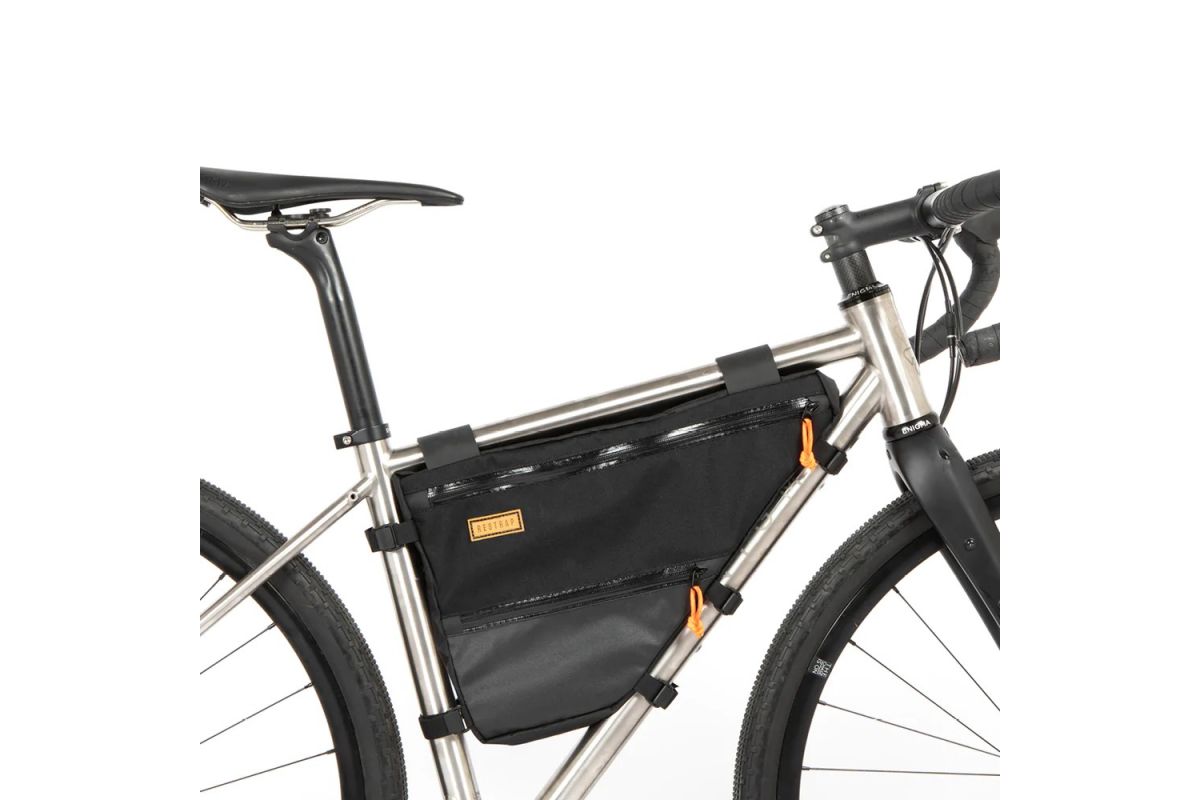 Via een doordacht systeem van klittenband en riemen wordt de tas in de driehoek van je frame gepositioneerd.