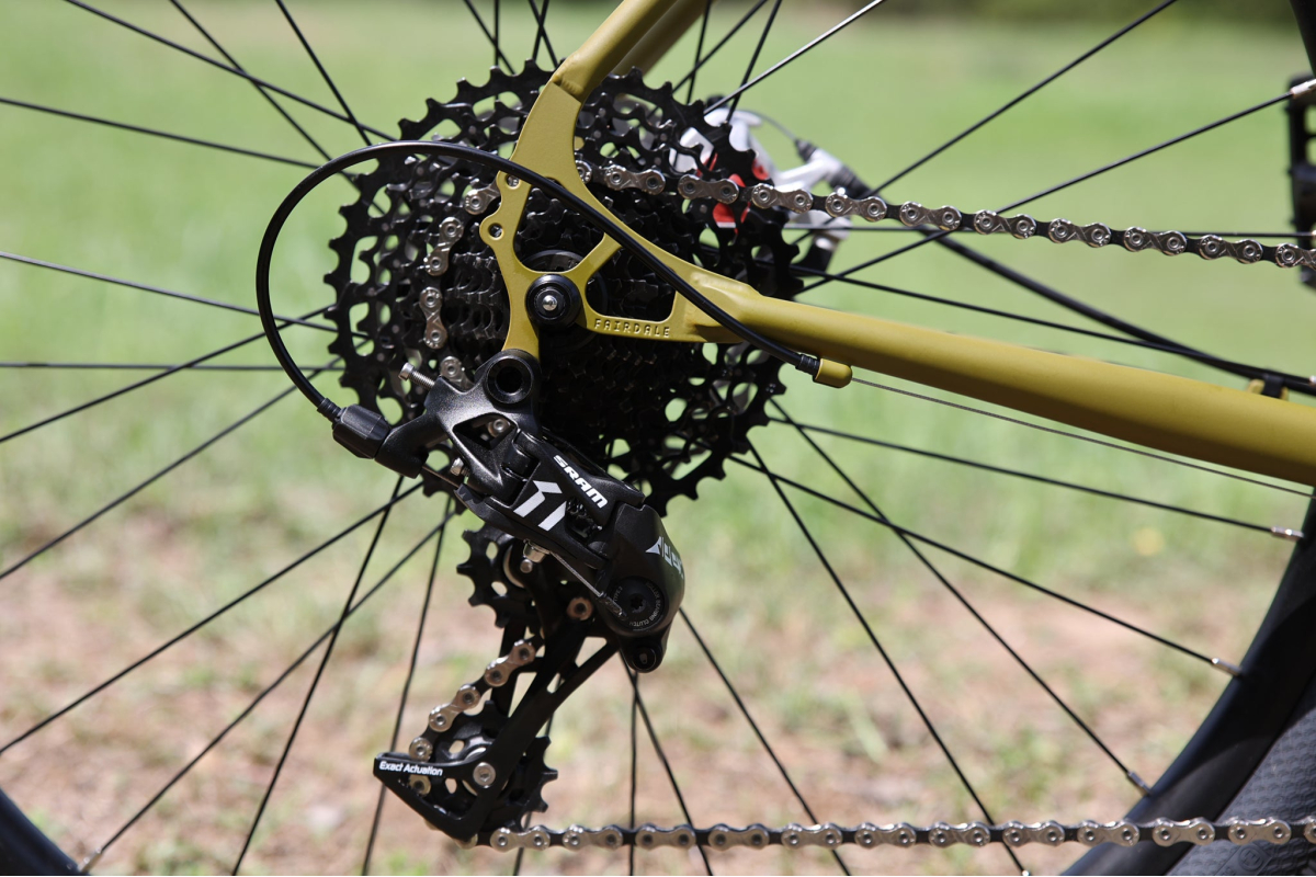 • Achterderailleur: SRAM Apex 1, lange kooi, 11 versnellingen