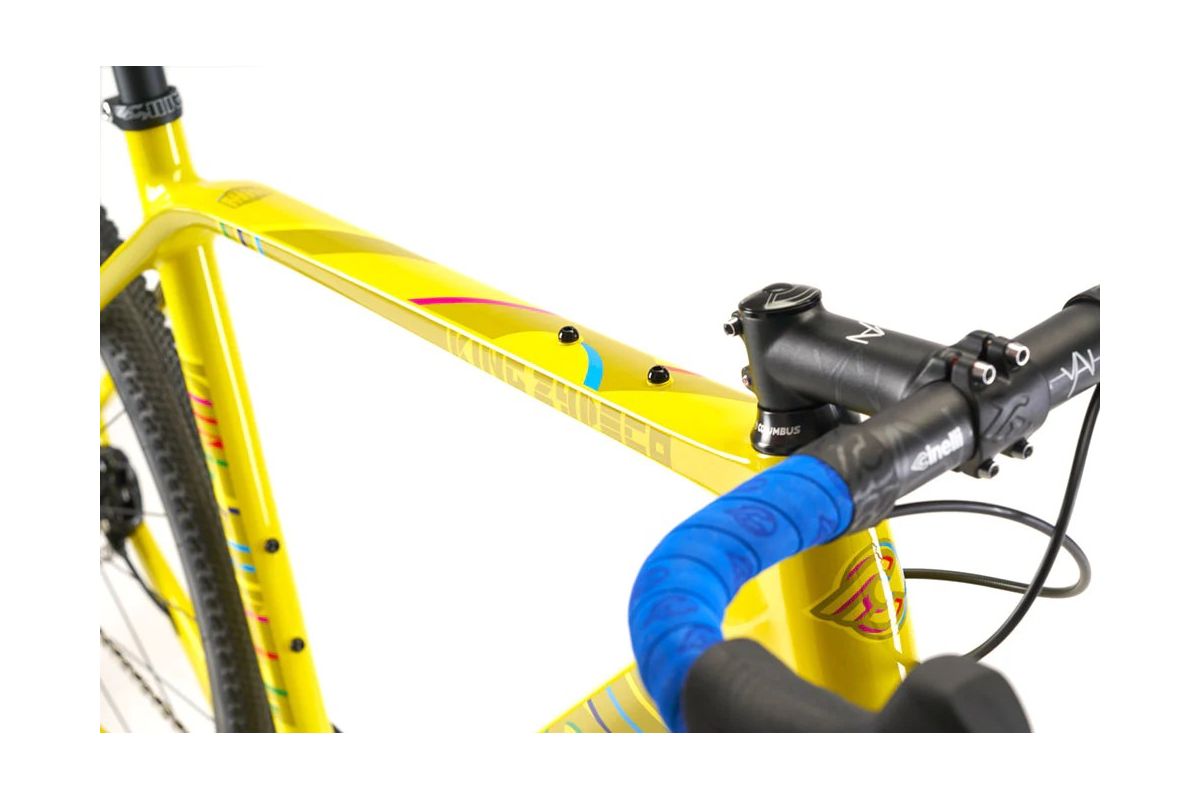 De Cinelli King Zydeco is ook verkrijgbaar als frame set. Het bovenstaande model vertegenwoordigt een montage met onder andere een SRAM Rival-groep, Fulcrum-wielen, een Cinelli Neos-stuurpen en een Cinelli Neos-zadelpen.