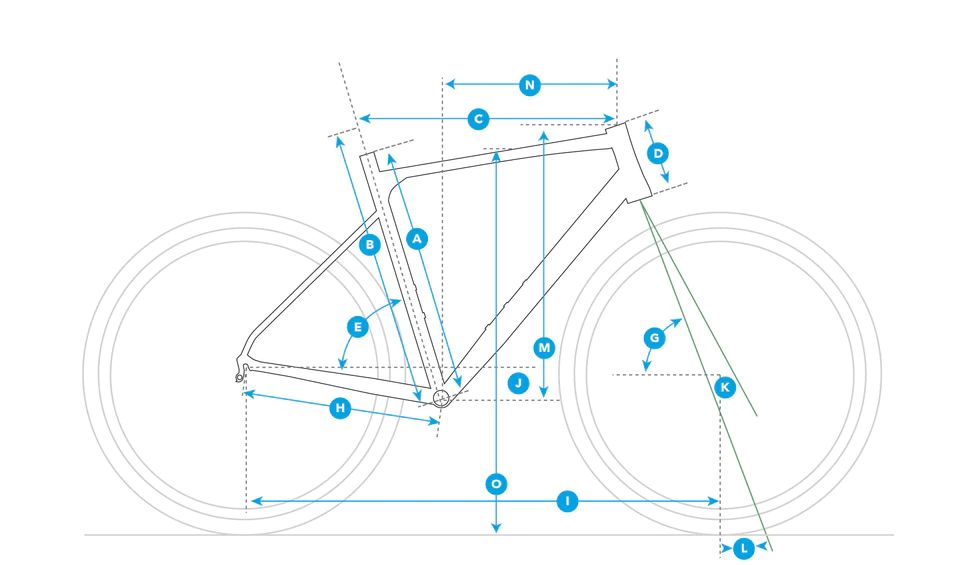 | B | Seat Tube effectief | 480 | 520 | 540 | 555 | 575 |