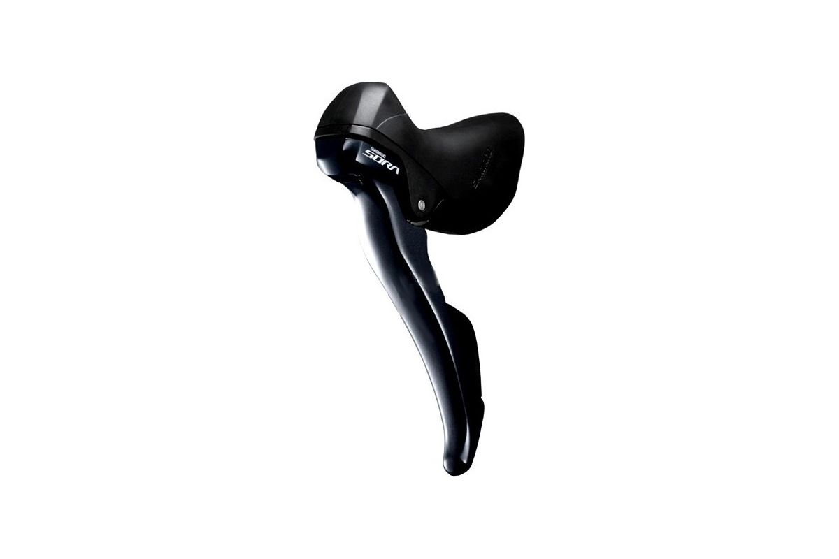 De Shimano Sora ST-R3000 shifter met dubbel kettingblad links is ontworpen voor racefietsen en racesturen.
