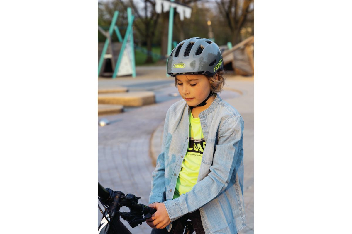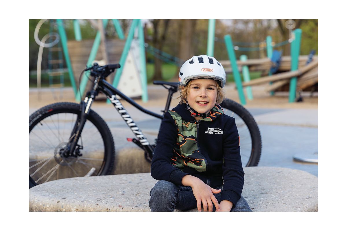 Het teken Abus biedt zijn nieuwe collectie helm voor kinderen aan ziet er erg leuk uit en de hoogwaardige bescherming, perfect voor kinderen op kinderstoel, maar ook voor zelfstandigen op loopfiets of vélo.