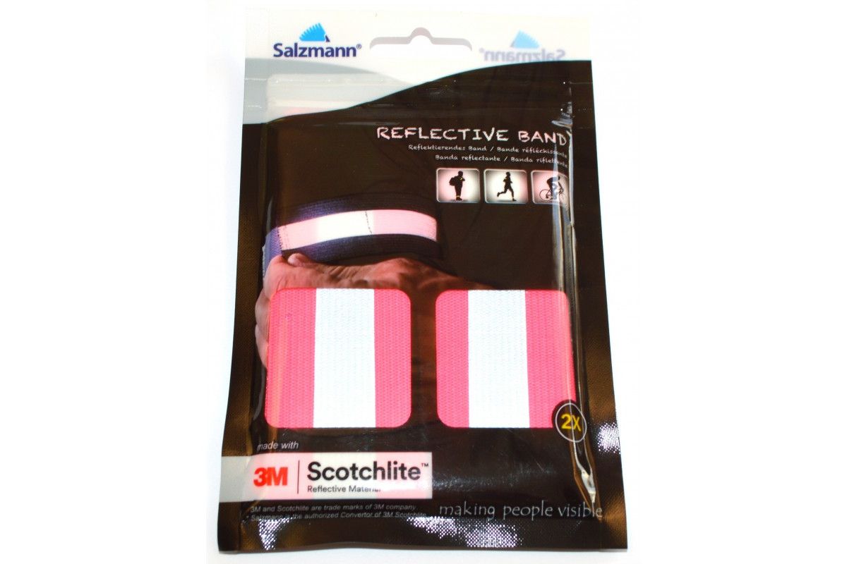Het paar reflecterende Salzmann neonroze armbanden kan niet alleen gemakkelijk aan de arm, het been of de pols worden bevestigd, maar zorgt ook voor een aanzienlijk betere zichtbaarheid overdag en 's nachts.
