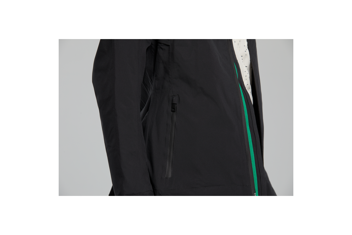 Dankzij het gebruik van twee-weg stretch materiaal, de voorgevormde en getailleerde snit zit de jas perfect. Extra kenmerken zijn de verstelbare achterkant en voorgevormde mouwen met verstelbare bovenkanten. De driedelige capuchon is bovendien verstelbaar, zodat je goed kunt zien. Je kunt de capuchon ook gebruiken als je een helm draagt. Het beschikt over een verstelbare kraag, handig bij het dragen met een hoofddeksel of een volumineus kapsel.