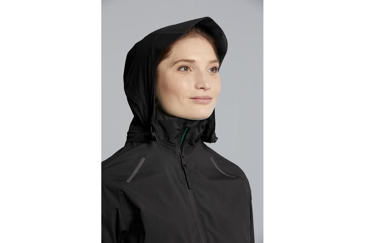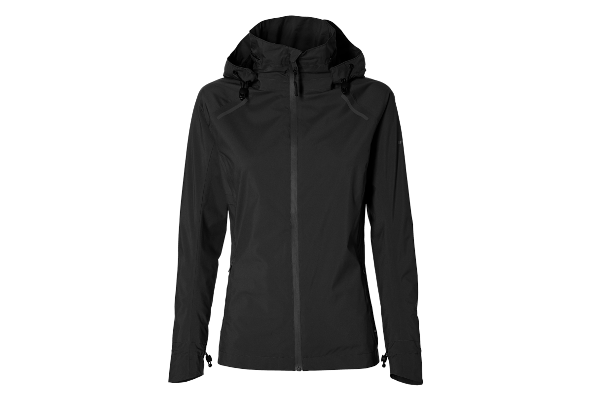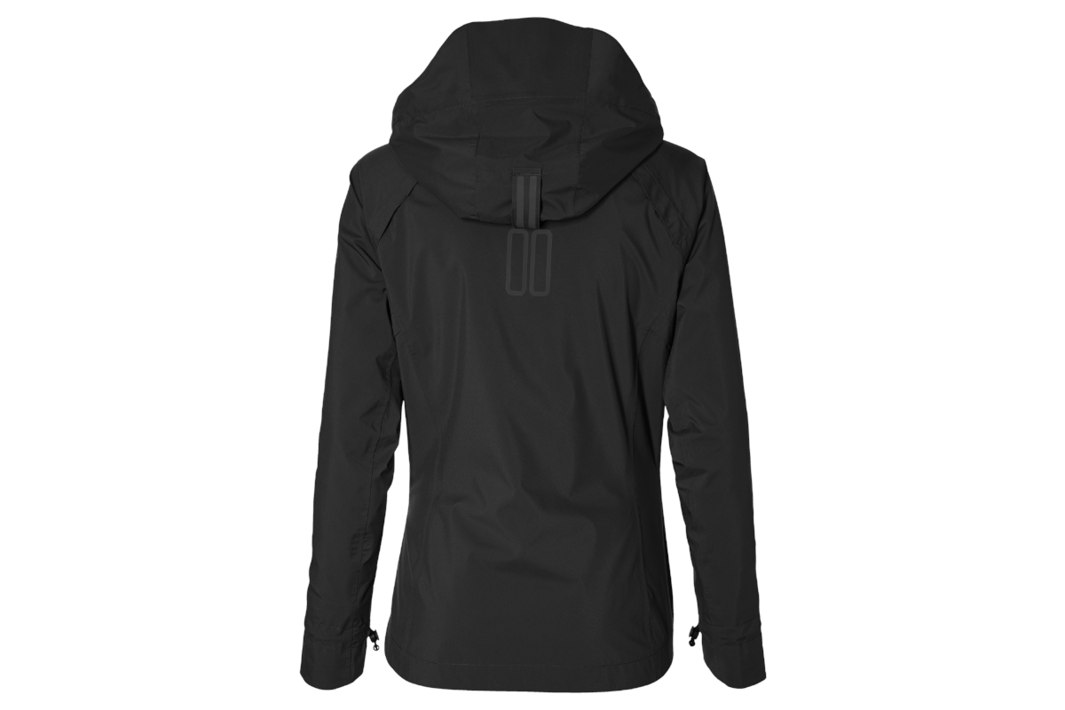 Dankzij het gebruik van twee-weg stretch materiaal, de voorgevormde en getailleerde snit zit de jas perfect. Extra kenmerken zijn de verstelbare achterkant en voorgevormde mouwen met verstelbare bovenkanten. De driedelige capuchon is bovendien verstelbaar, zodat je goed kunt zien. Je kunt de capuchon ook gebruiken als je een helm draagt. Het beschikt over een verstelbare kraag, handig bij het dragen met een hoofddeksel of een volumineus kapsel.