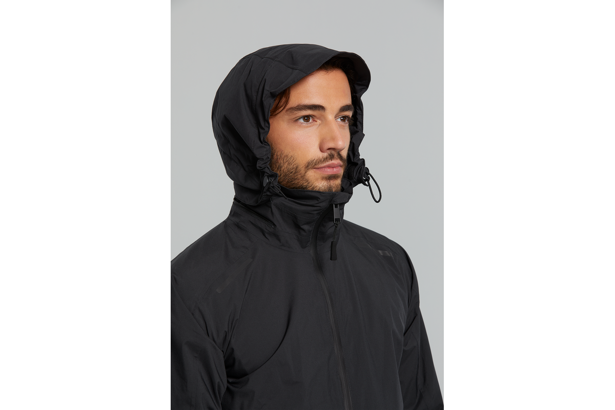 Verstelbare capuchon, zelfs als u een helm draagt.