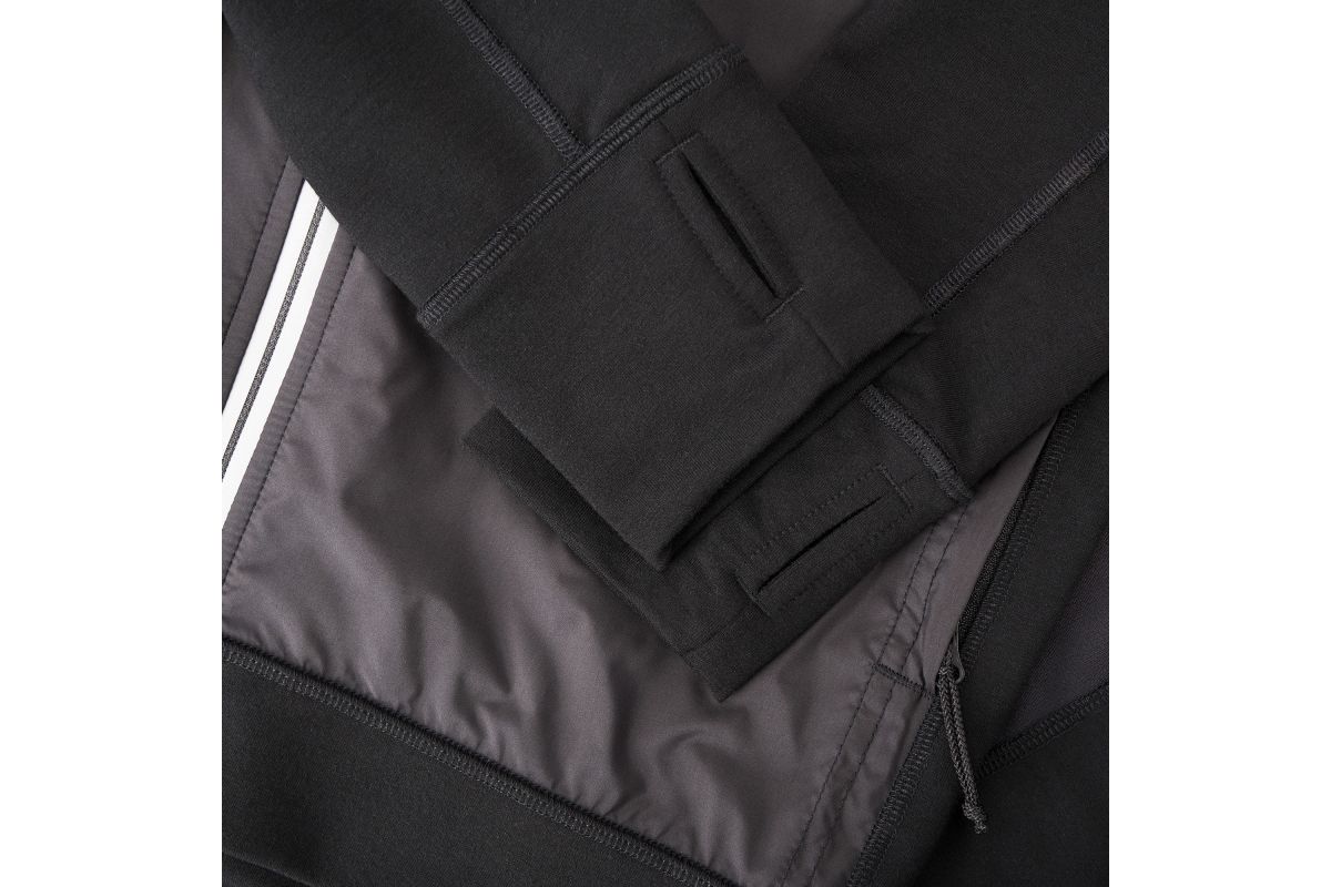 Het heeft duimgaten in de mouwen om je armen warm te houden.