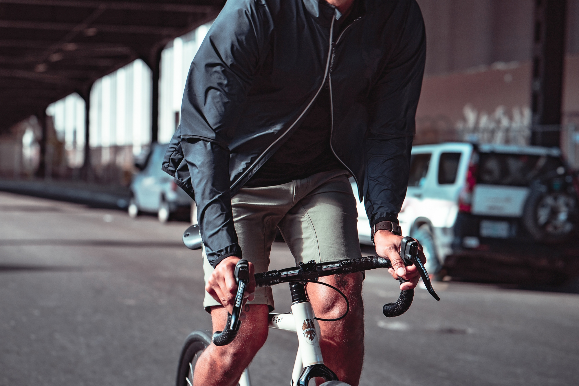 De jas is gemaakt van dunne, lichtgewicht, waterbestendige lagen en is ideaal voor stadsfietsers die op zoek zijn naar een efficiënte, krachtige windbreaker.