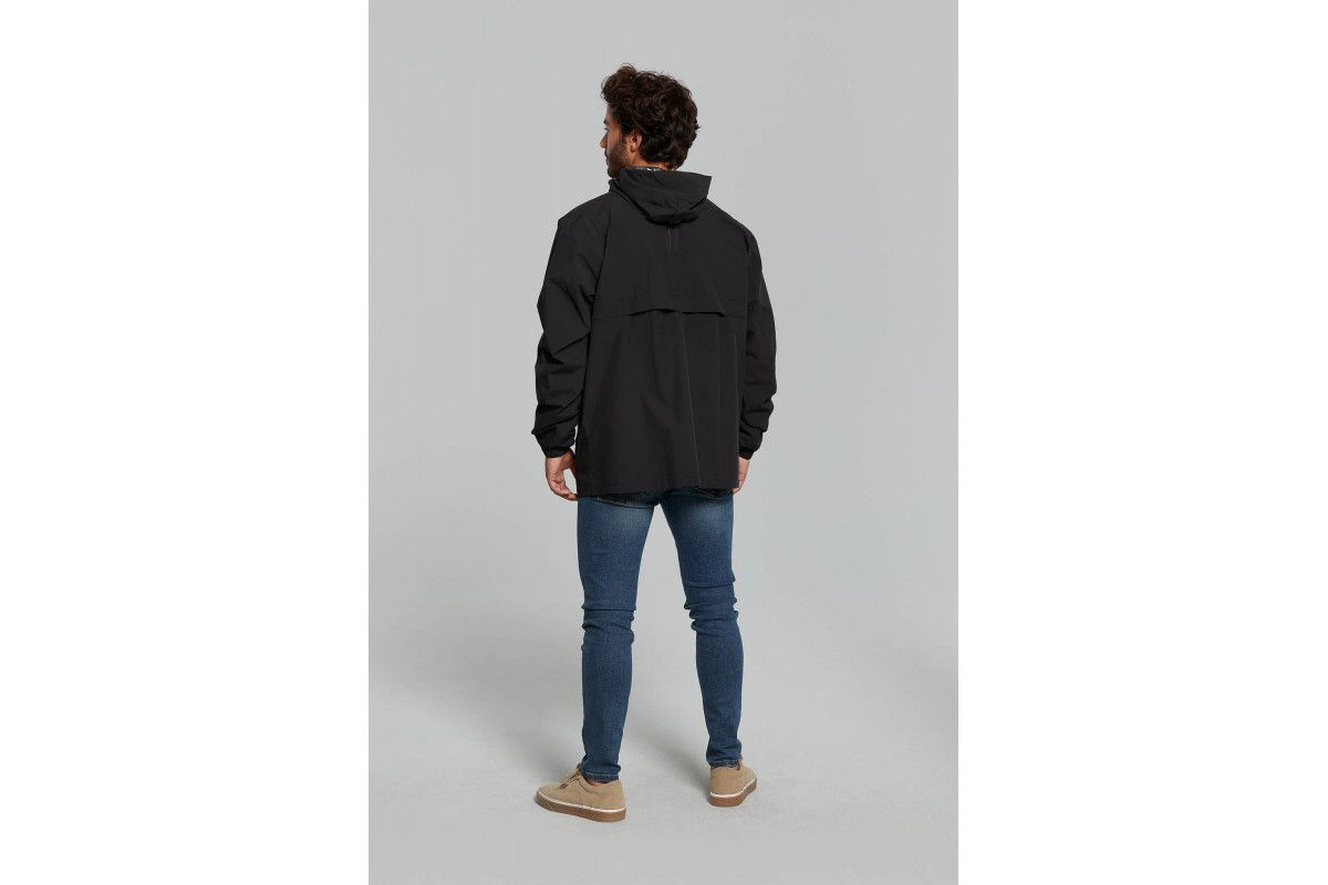 Het is voorzien van een dubbele sluiting aan de voorzijde en elastische mouwen om te voorkomen dat de regen binnenkomt.